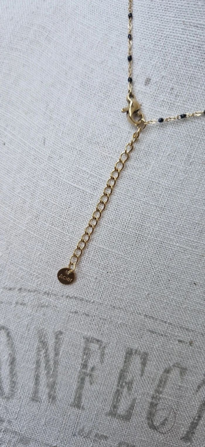 Collier chai réglable acier inoxydable or perles résine noires trèfle cristaux noirs - photo numéro 4
