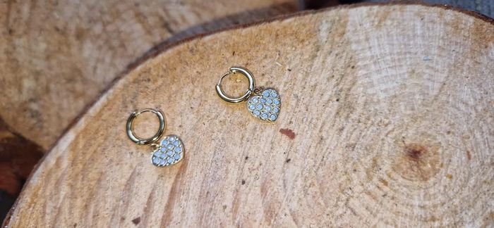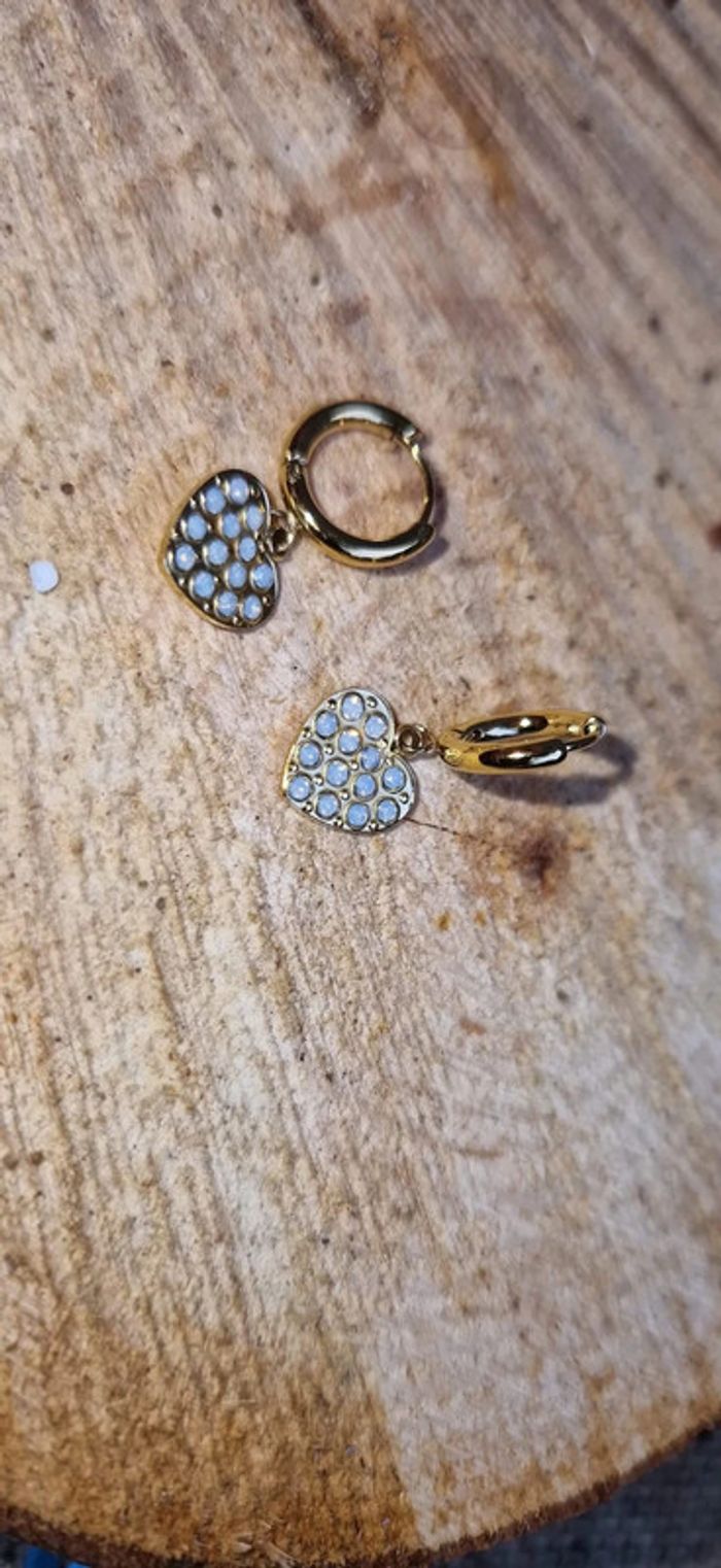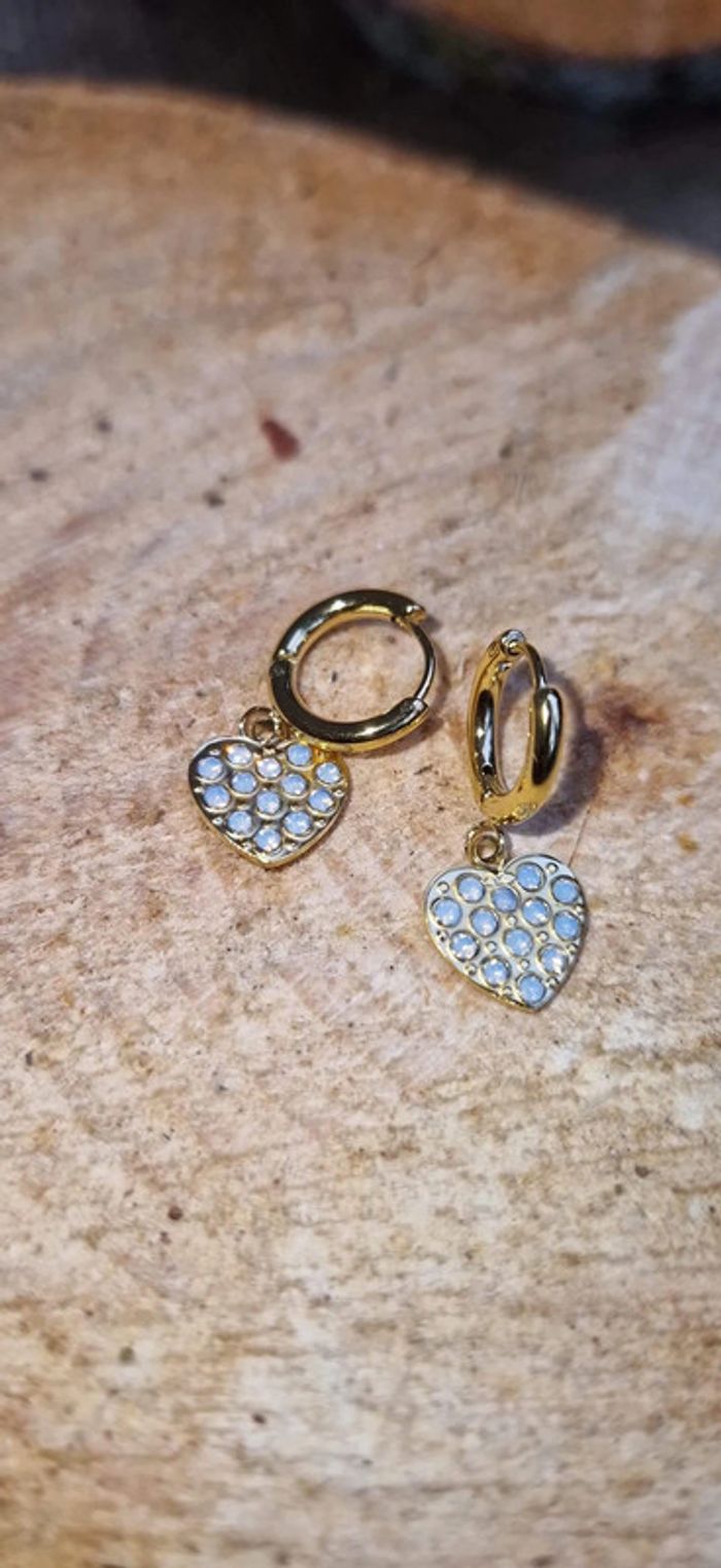 Boucles d’oreilles petites créoles cœurs petites perles blanches translucide