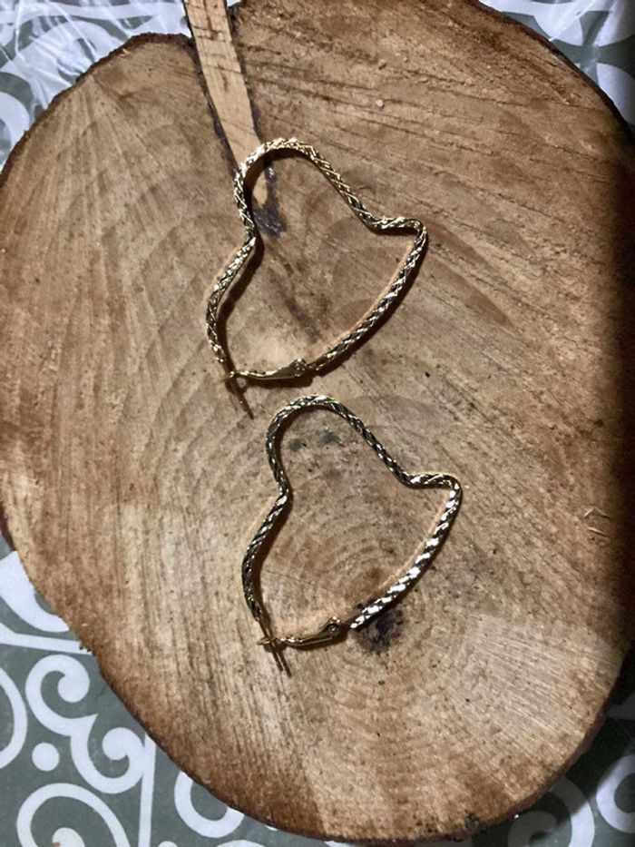 Créoles en forme de cœur acier inoxydable or - photo numéro 2