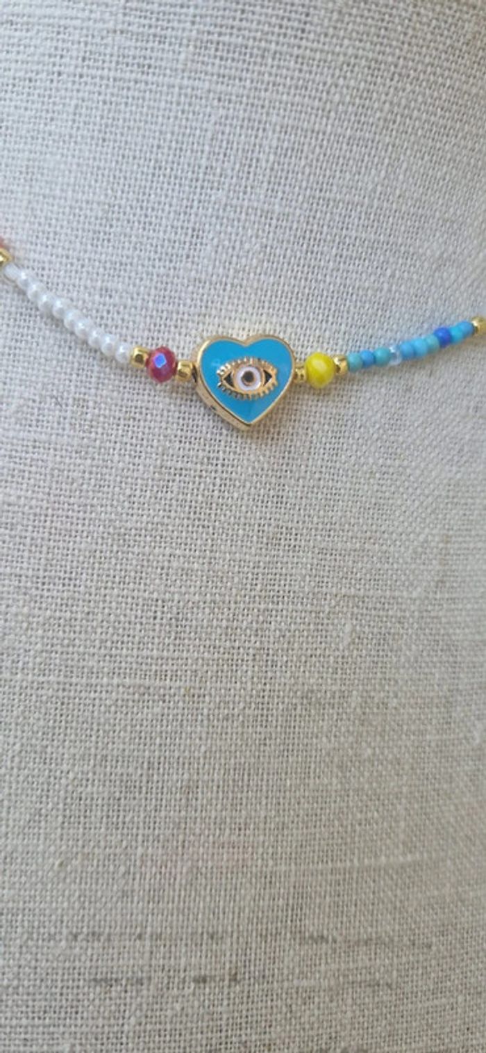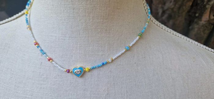 Collier perles tons pastel réglable cœur œil réglable - photo numéro 1
