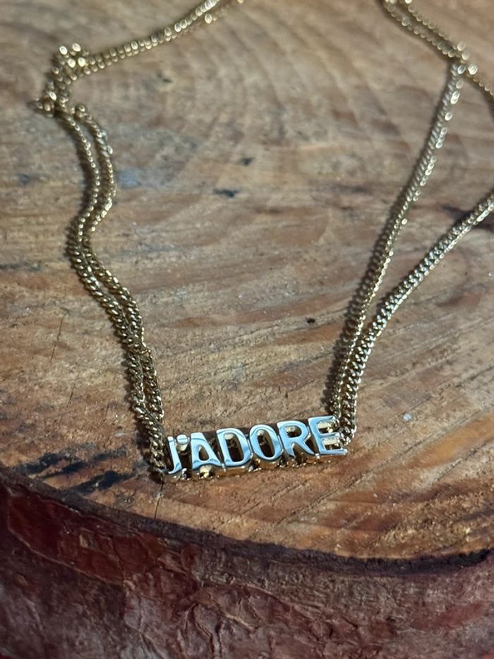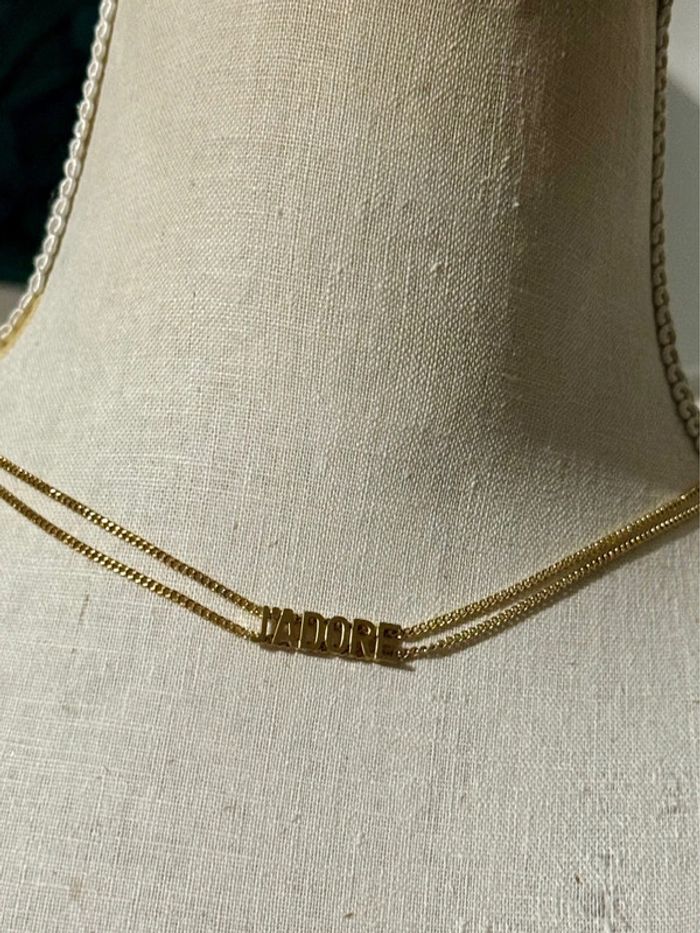 Collier réglable 2 chaînes message amour acier inoxydable or de qualité neuf dans pochon