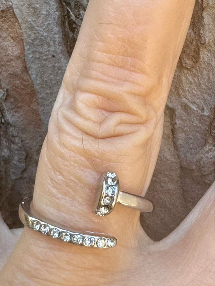 Bague réglable acier inoxydable argent cristaux en forme de clou - photo numéro 2