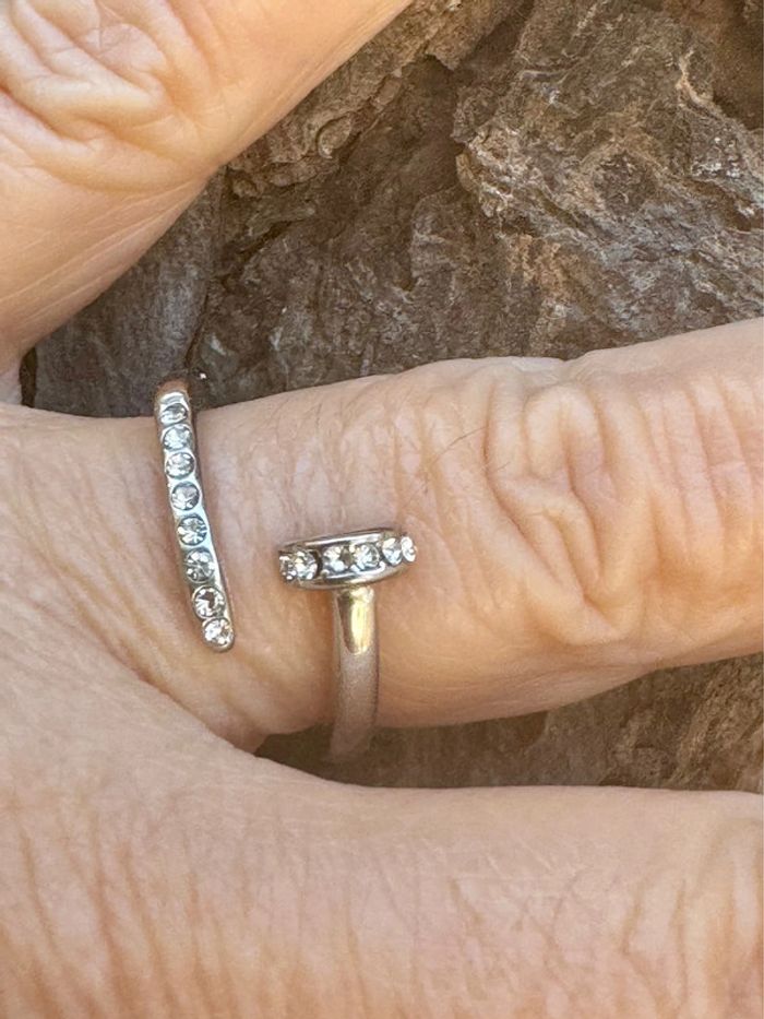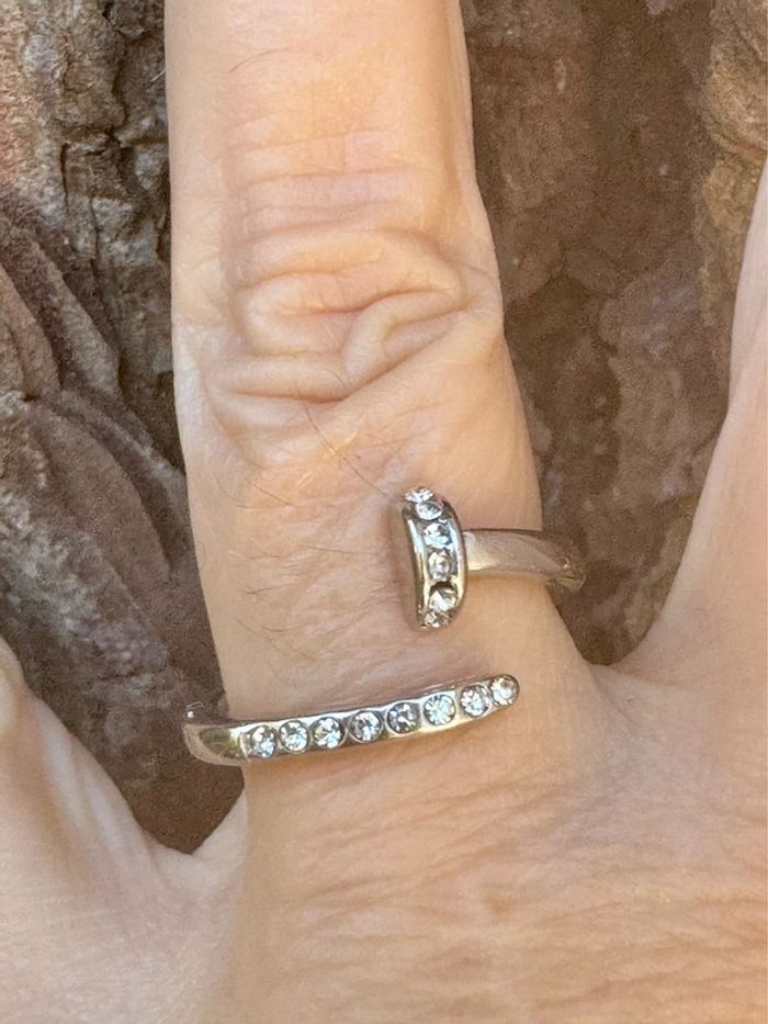 Bague réglable acier inoxydable argent avec des cristaux en forme de clou neuve dans pochon