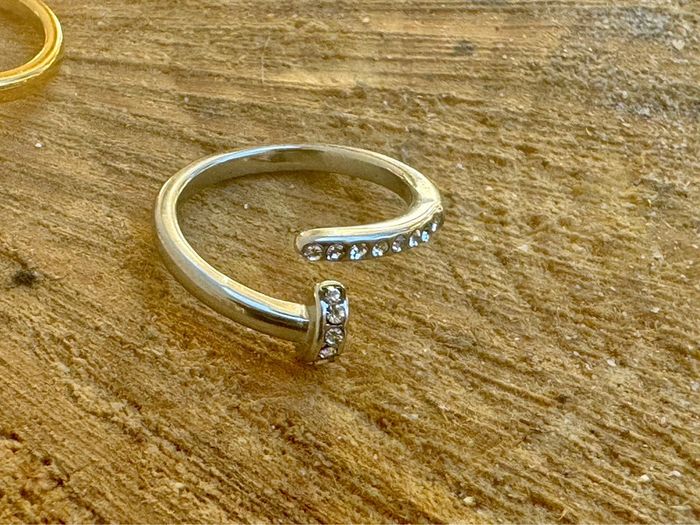 Bague réglable acier inoxydable or cristaux en forme de clous - photo numéro 2