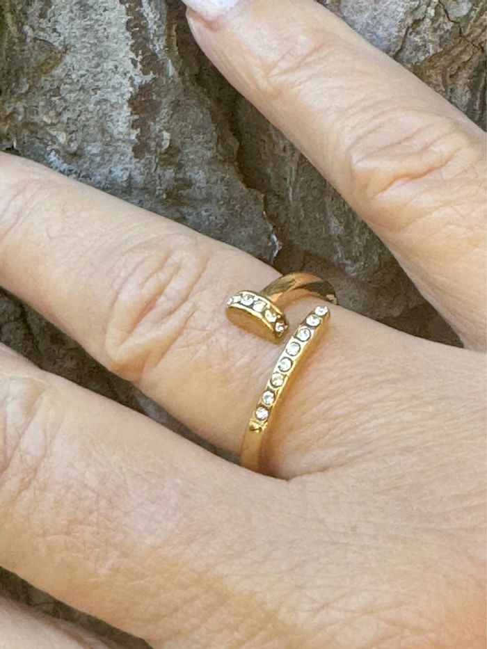 Bague réglable acier inoxydable or de qualité avec cristaux en forme de clous neuve dans pochon