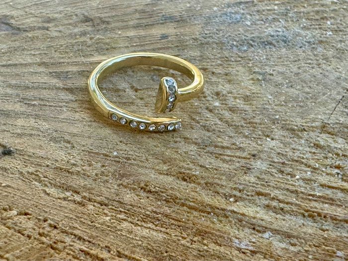 Bague réglable acier inoxydable or cristaux en forme de clous - photo numéro 1