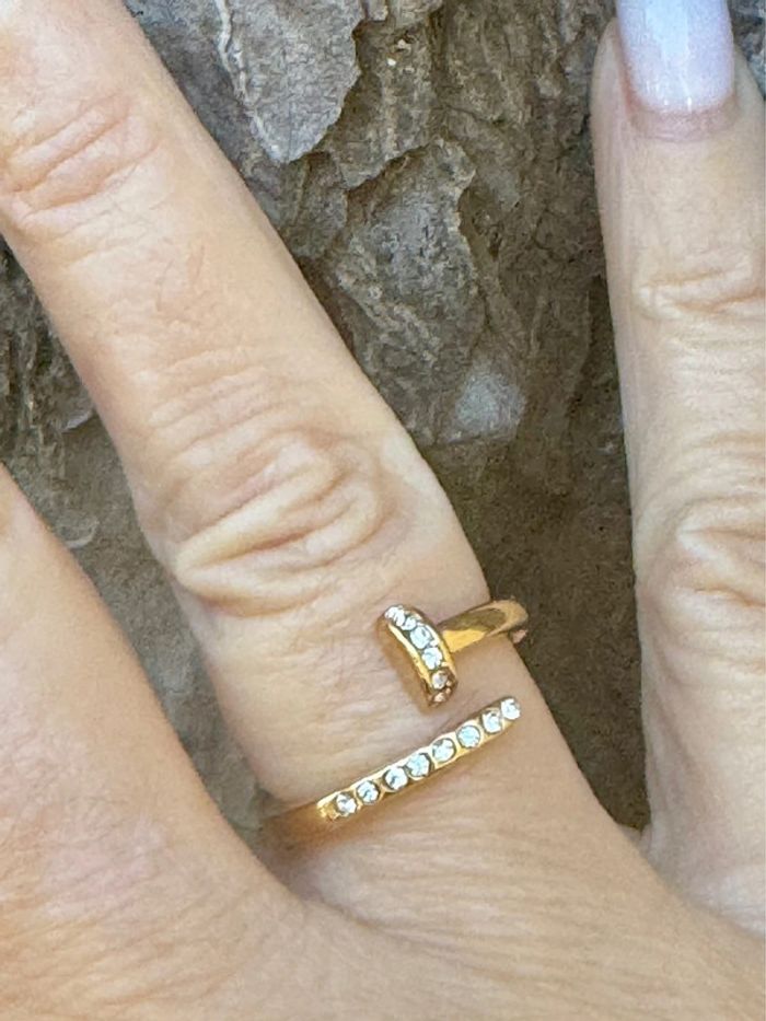 Bague réglable acier inoxydable or cristaux en forme de clous - photo numéro 5