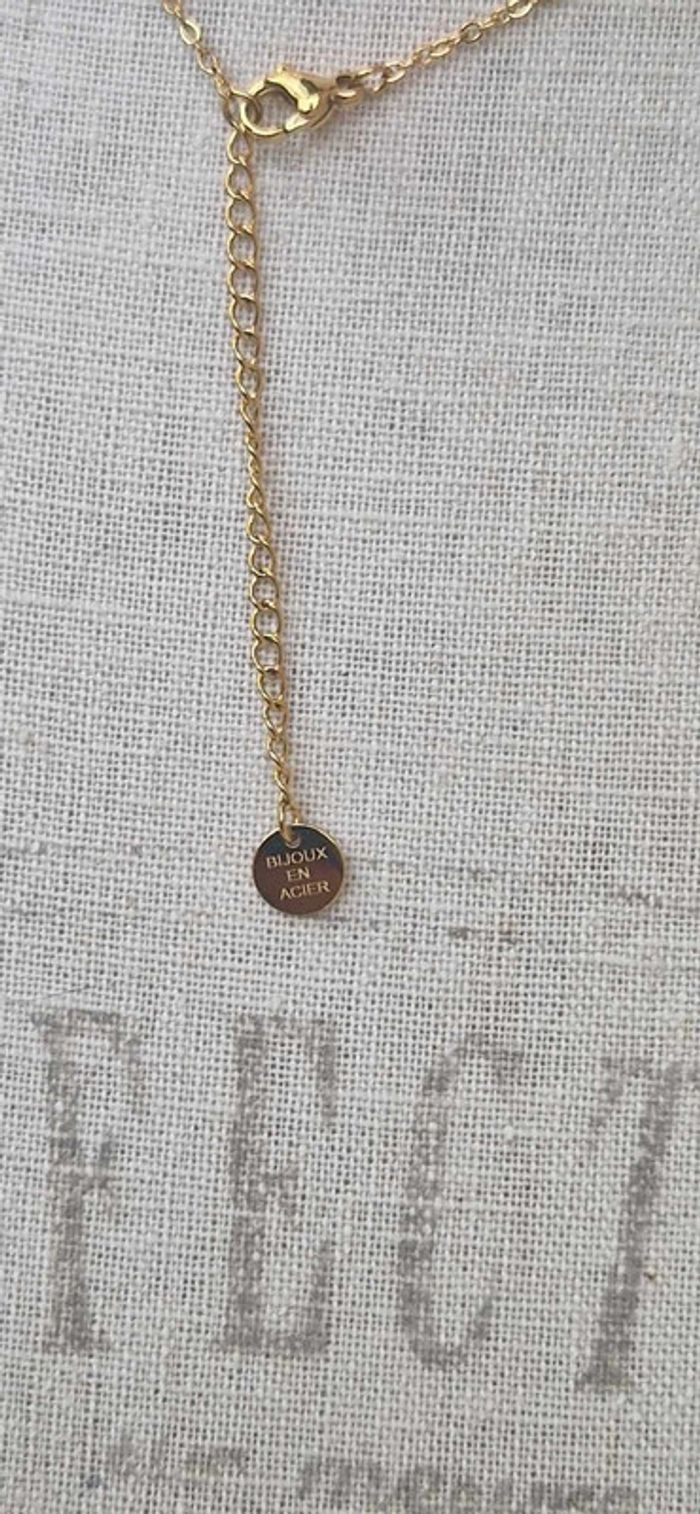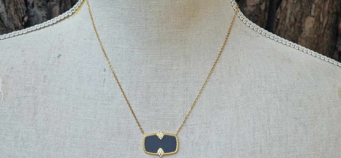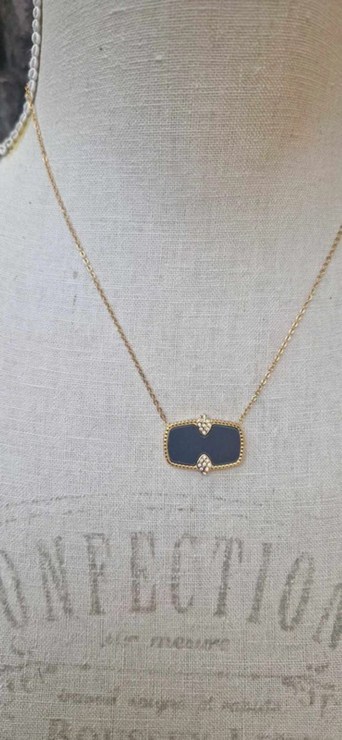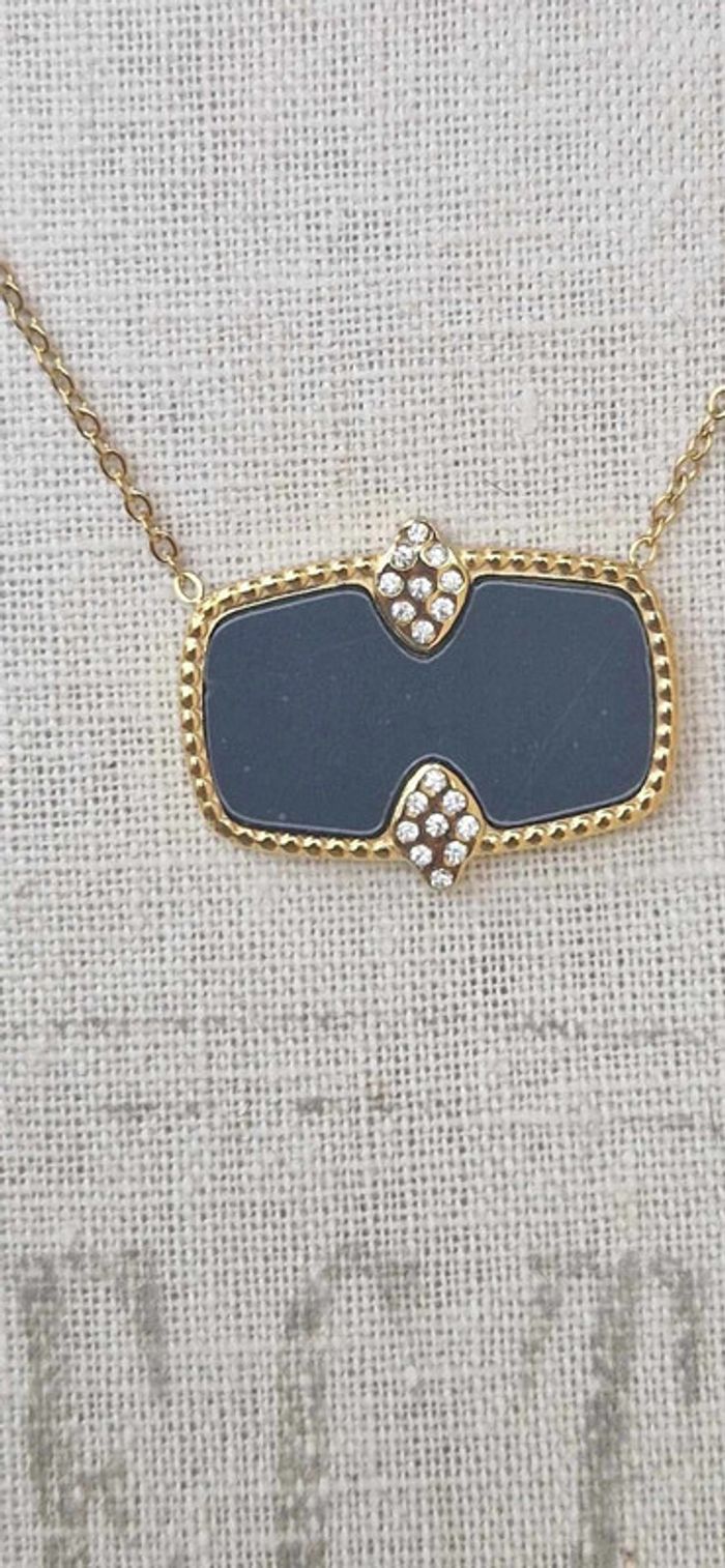 Collier réglable acier inoxydable or pavé résine noire cristaux