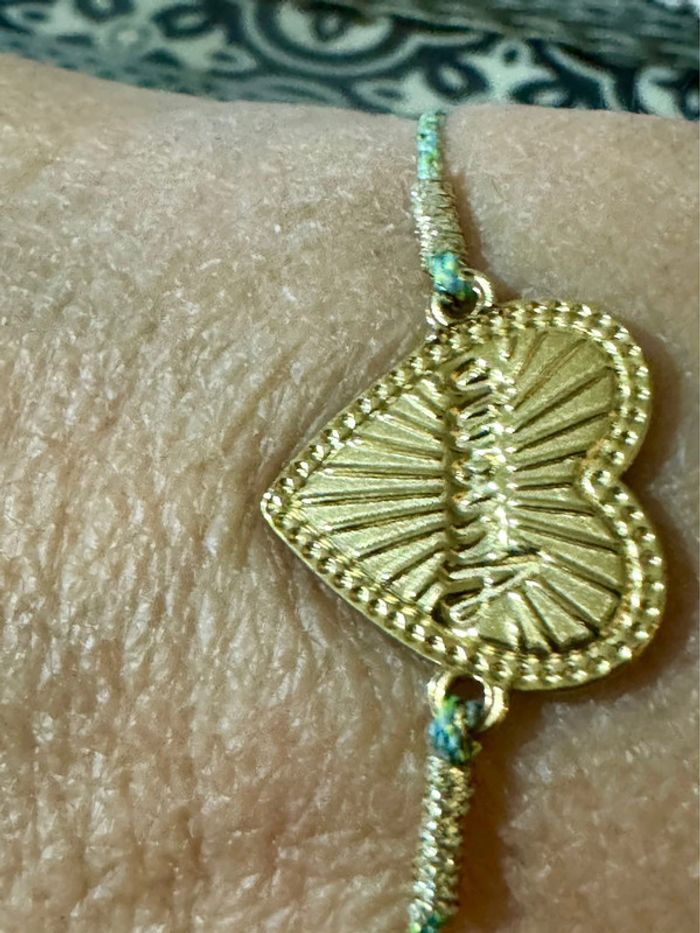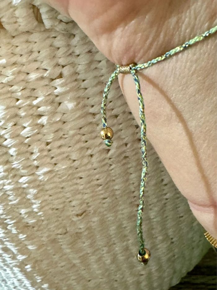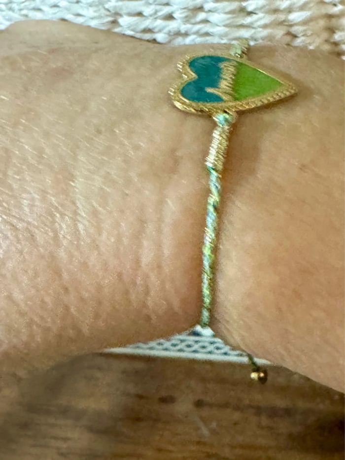 Bracelet cordons tresses réglables cœur résine turquoise vert love acier inoxydable or résine - photo numéro 4