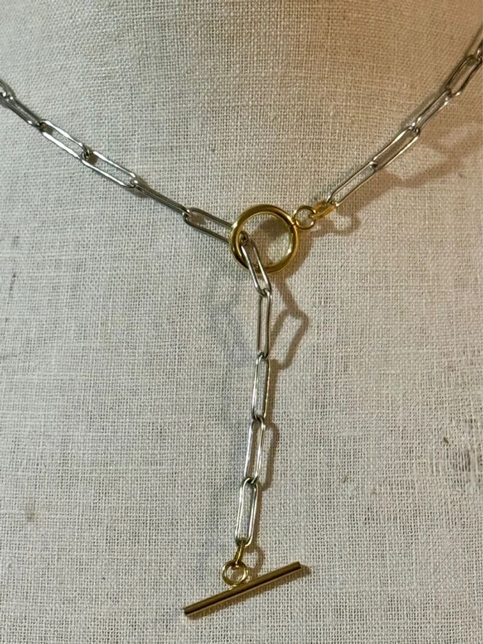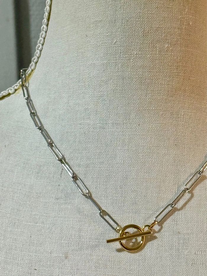 Collier mailles larges fermoir cercle tige trace acier inoxydable argent et or Habaha Paris - photo numéro 2