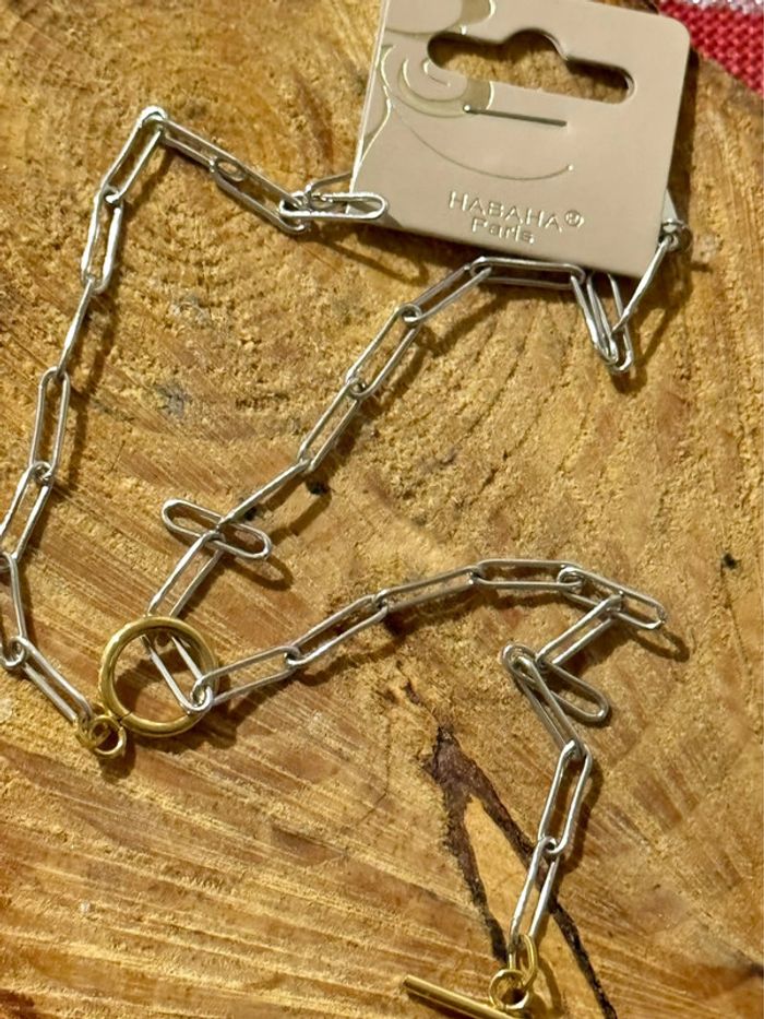 Collier mailles larges fermoir cercle tige trace acier inoxydable argent et or Habaha Paris - photo numéro 1