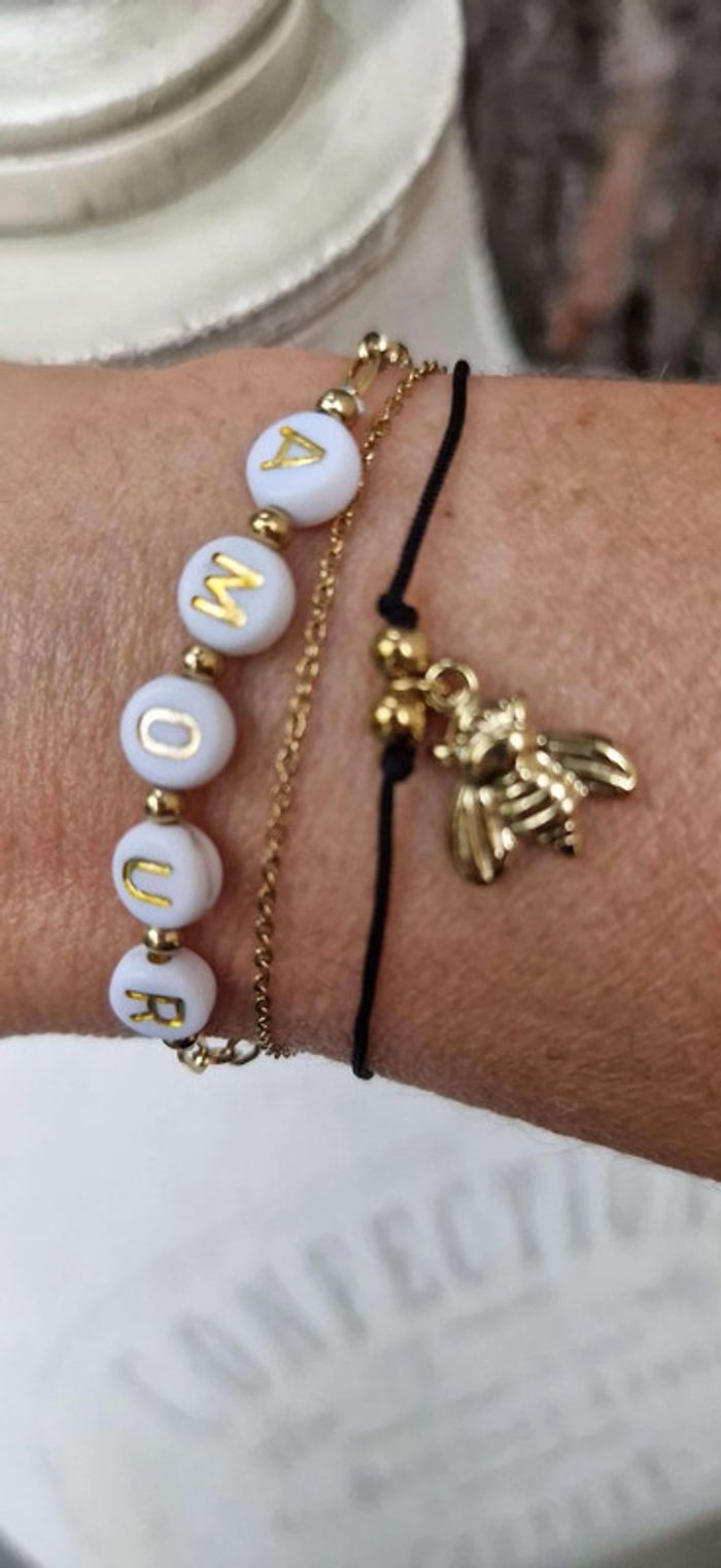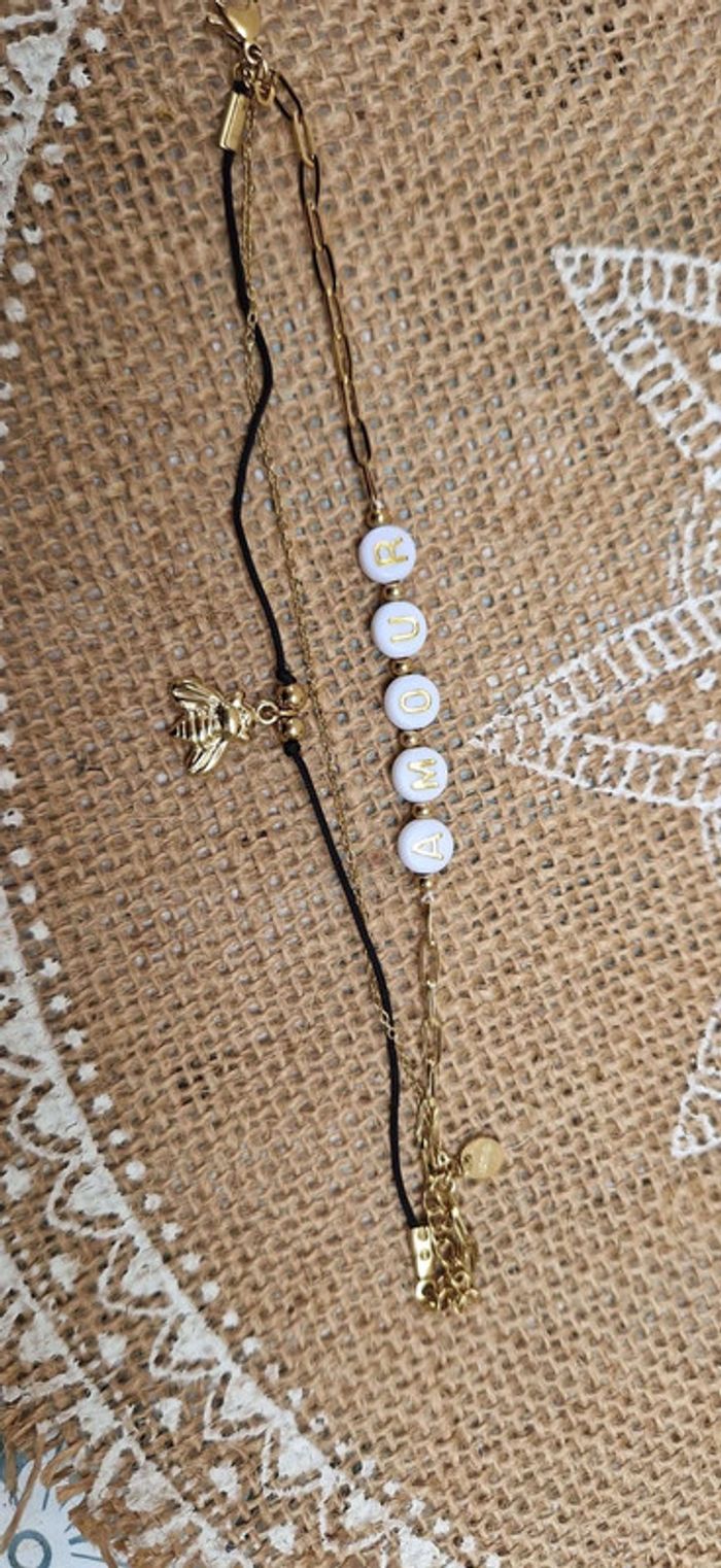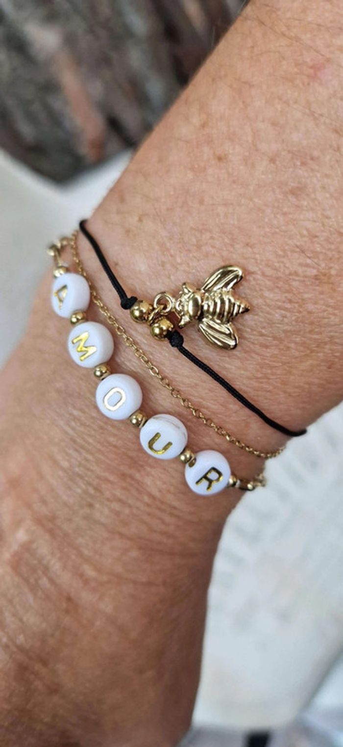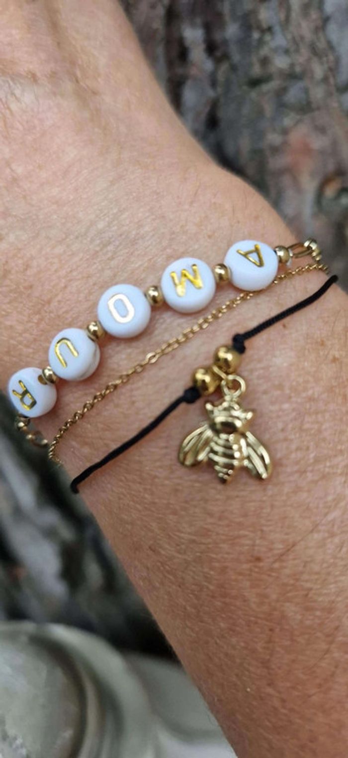 Bracelet 3 rangs d’il chaînes 1 fine 1 large perles amour abeille