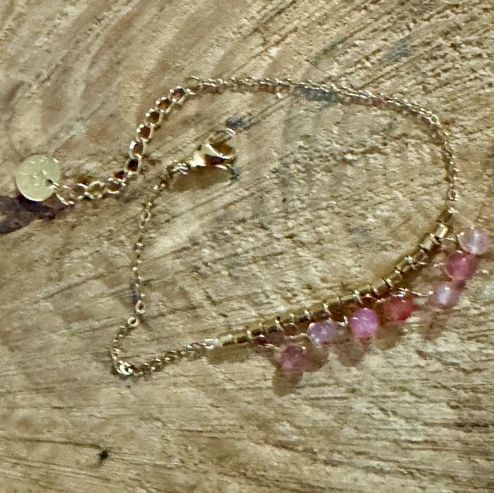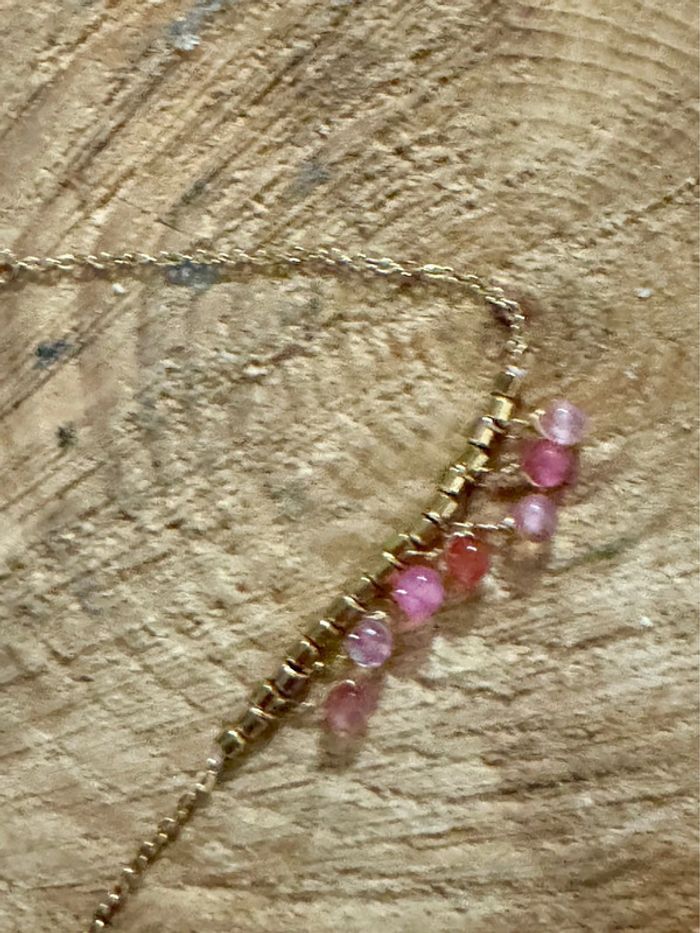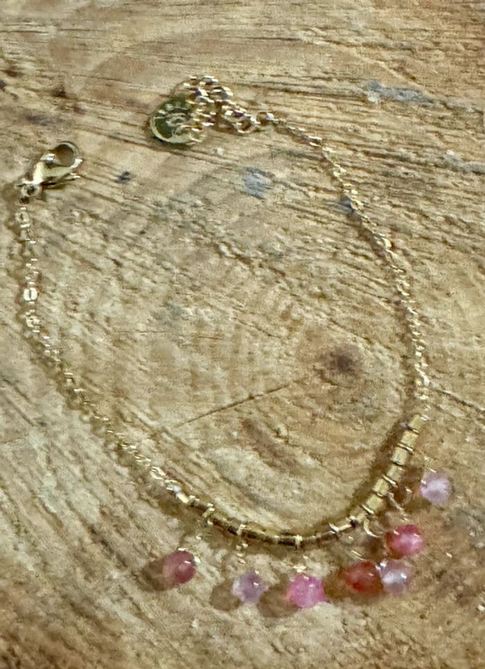 Bracelet réglable acier inoxydable or perles or et rose en breloque - photo numéro 1