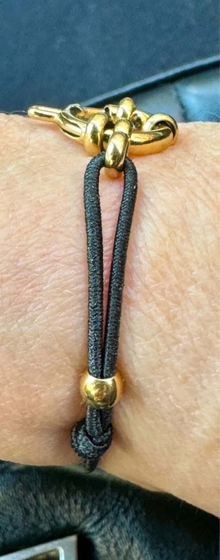 Bracelet cordon noir réglable fermoir bouée acier inoxydable or - photo numéro 4