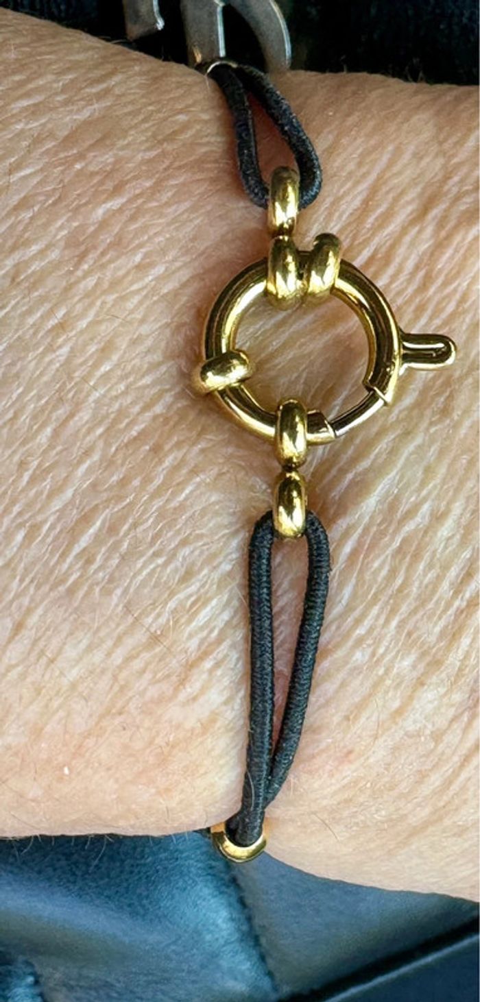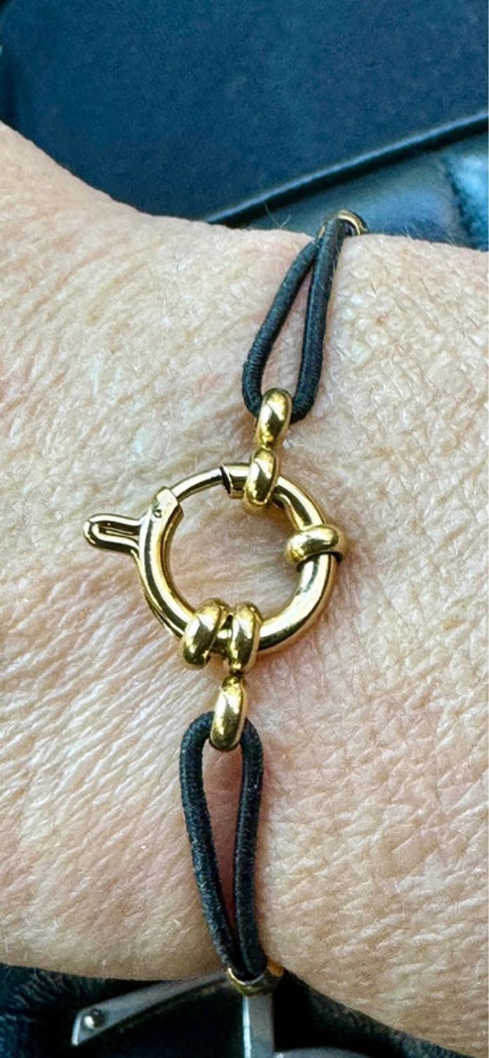 Bracelet cordon noir réglable fermoir bouée acier inoxydable or - photo numéro 3