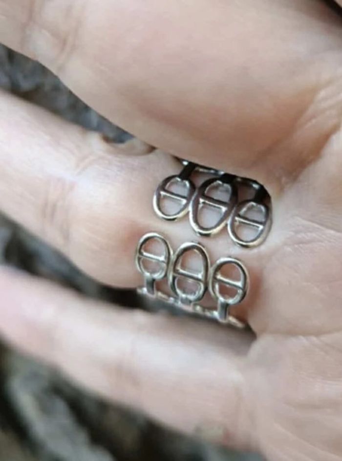 Bague large réglable acier inoxydable argent maillons farandole neuve dans pochon - photo numéro 2