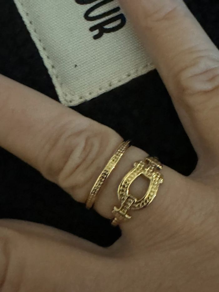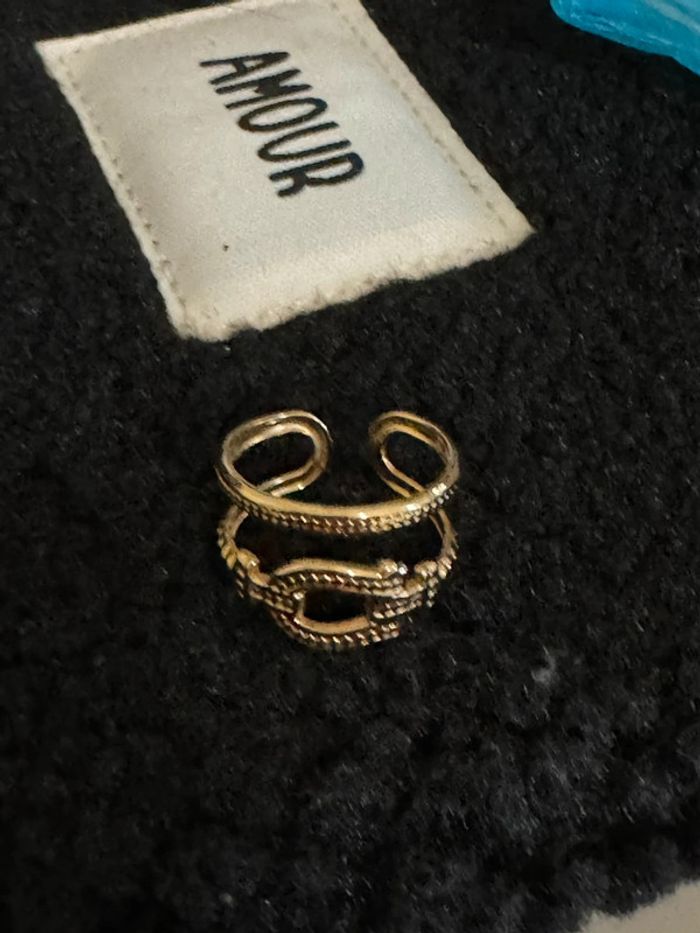 Bague large réglable acier inoxydable or câble force neuve dans pochon