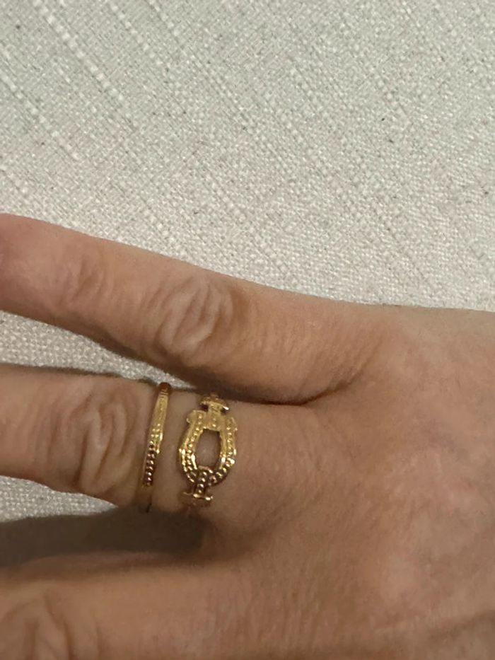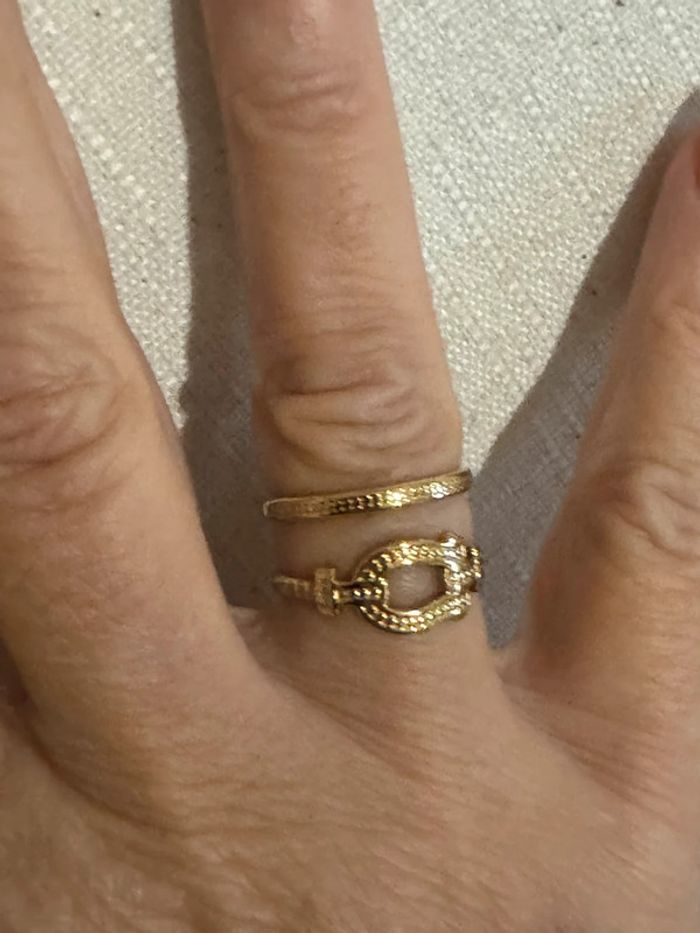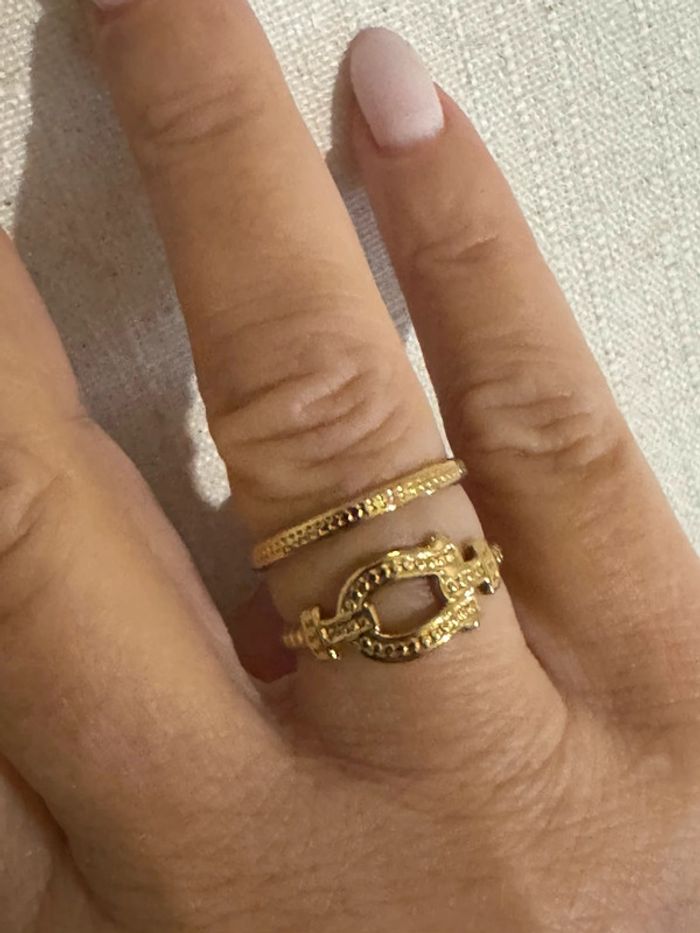 Bague large réglable câble force acier inoxydable or - photo numéro 4