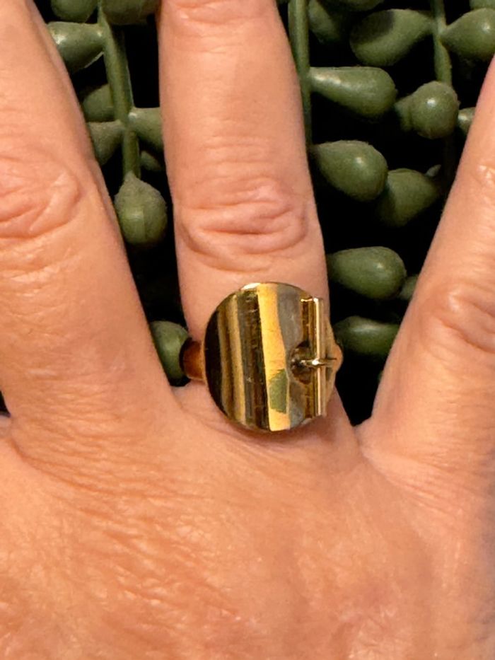 Bague taille 52/7 acier inoxydable or médaille tige traversante - photo numéro 5