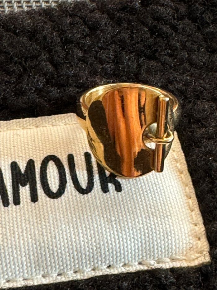 Bague taille 57 /7 acier inoxydable or médaille xl tige traversante sur le côté superbe et de qualité neuve dans pochon