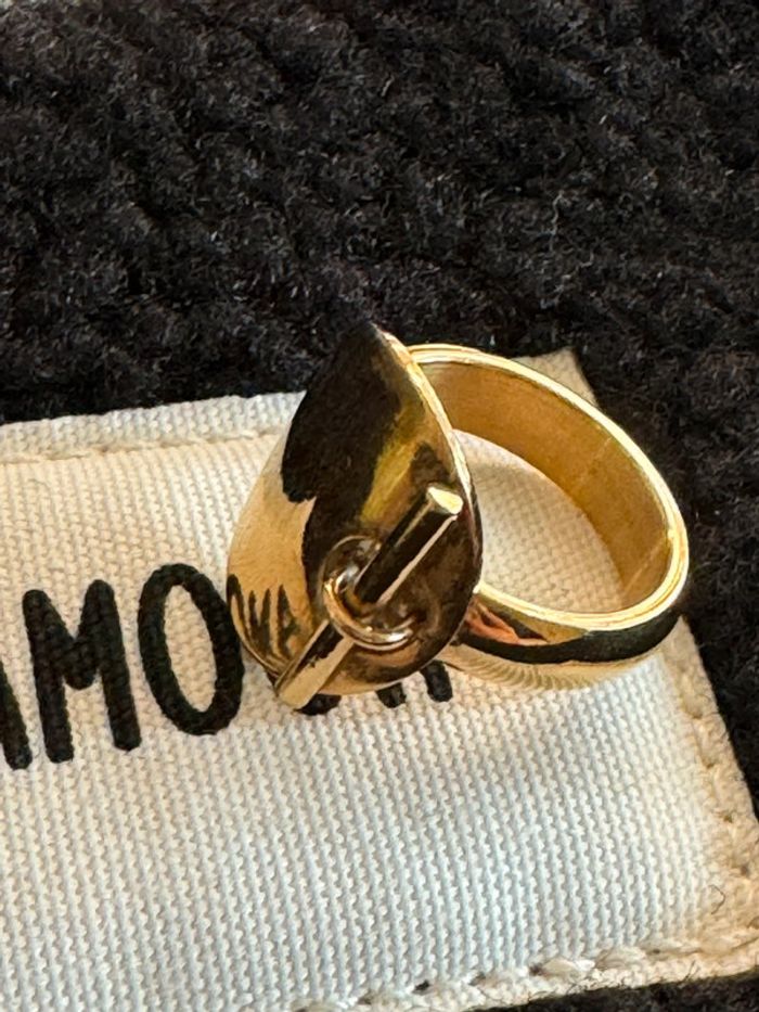 Bague taille 52/7 acier inoxydable or médaille tige traversante - photo numéro 2