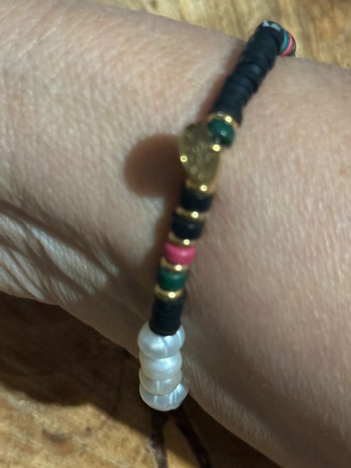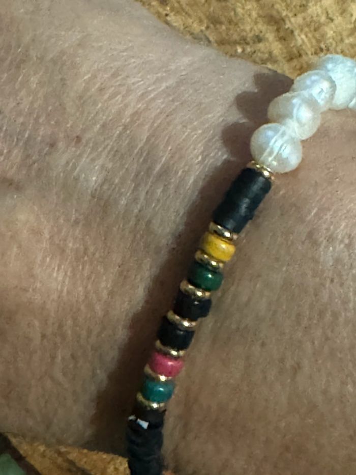 Bracelet grigri perles d’eau douces noires et couleurs réglable finitions acier inoxydable or - photo numéro 1