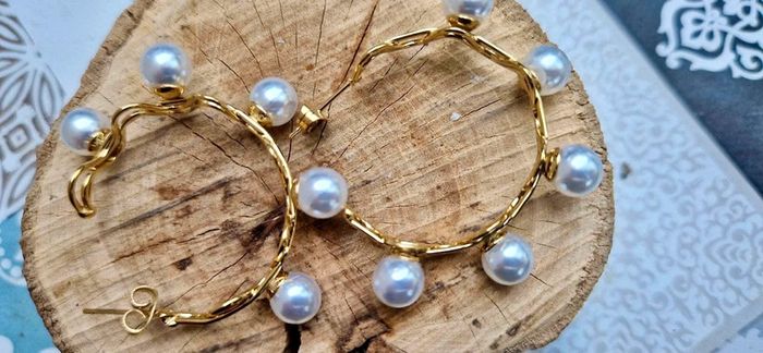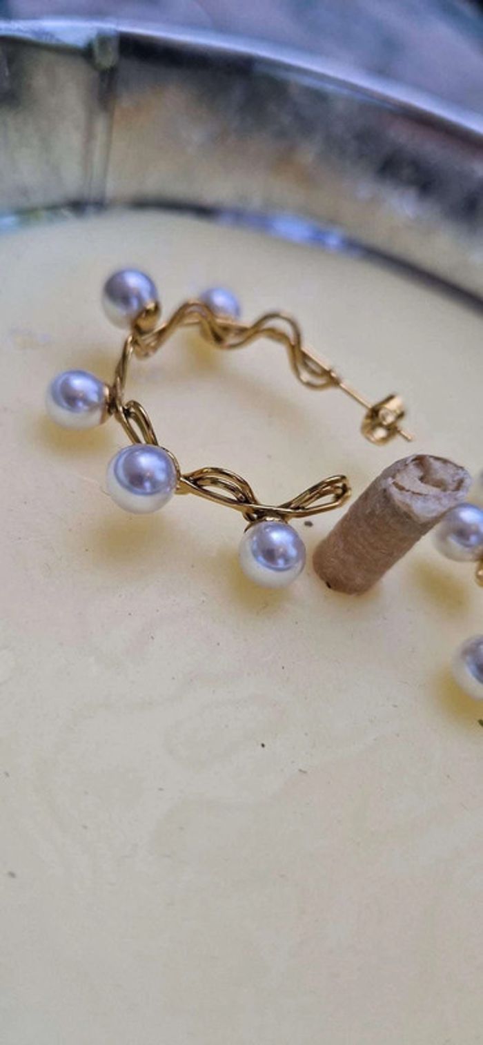Superbes créoles torsadées de taille moyennes acier inoxydable or de qualité perles d’eaux douces neuves dans pochon