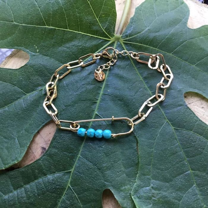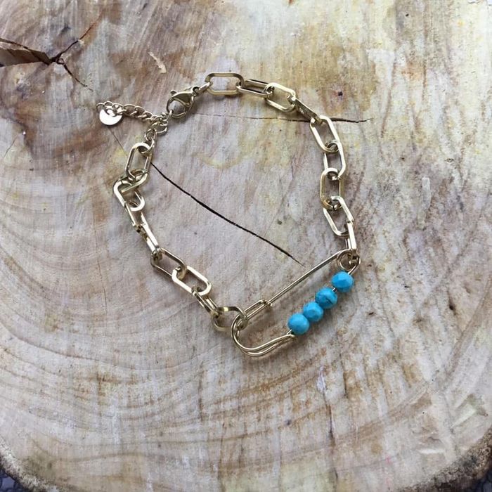 Bracelet réglable maillons larges épingle et perles turquoises - photo numéro 1