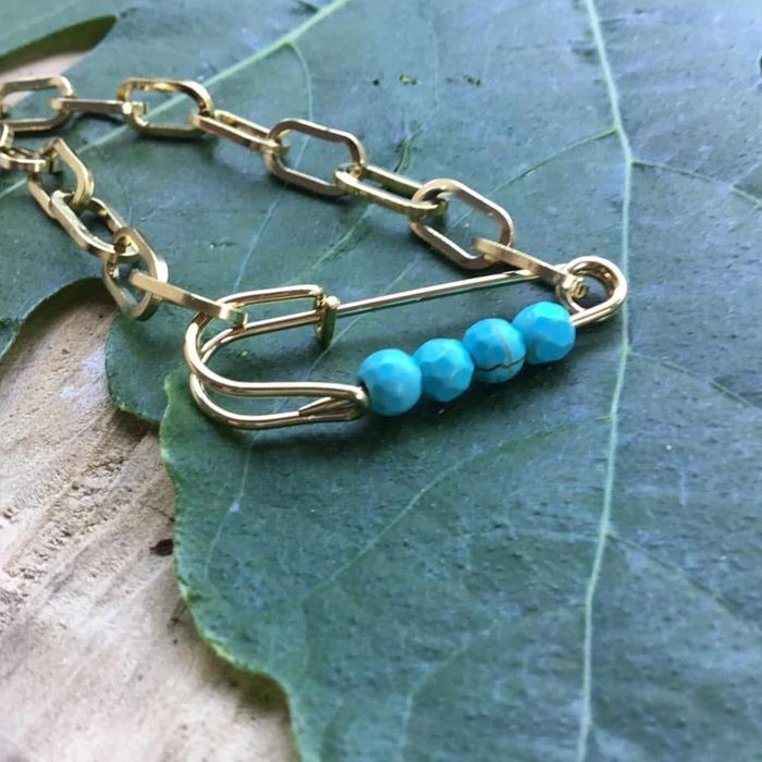 Bracelet réglable maillons larges épingle et perles turquoises - photo numéro 3