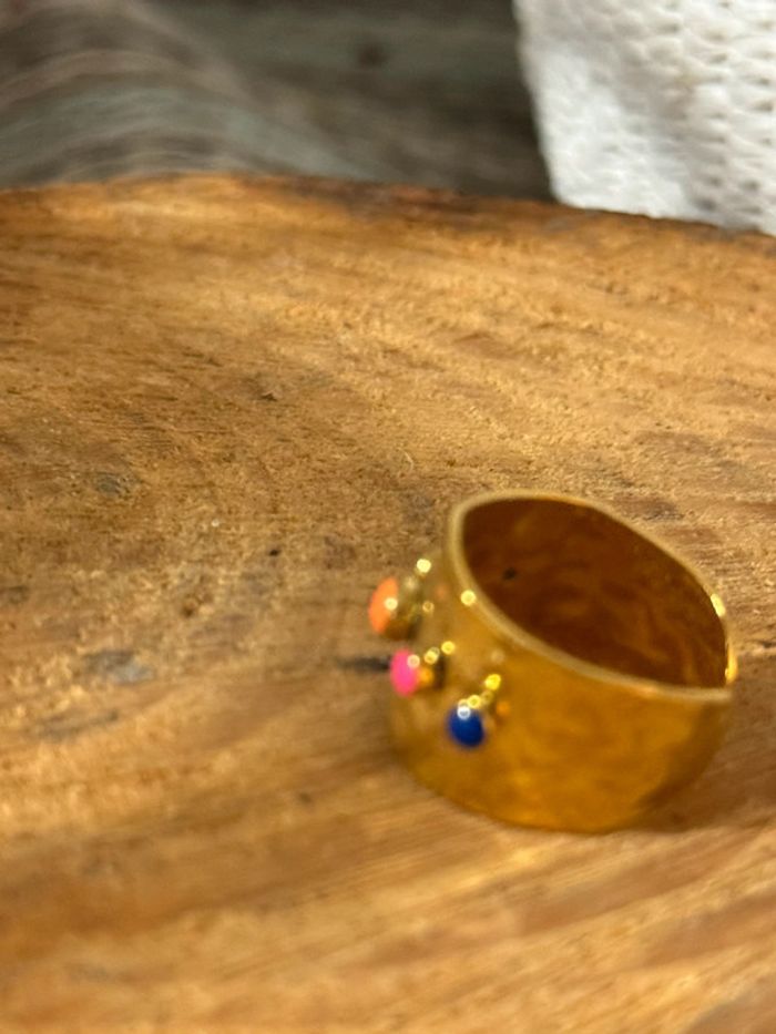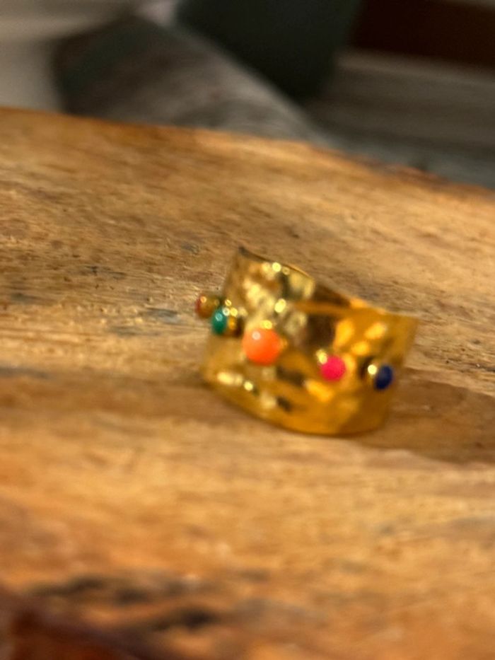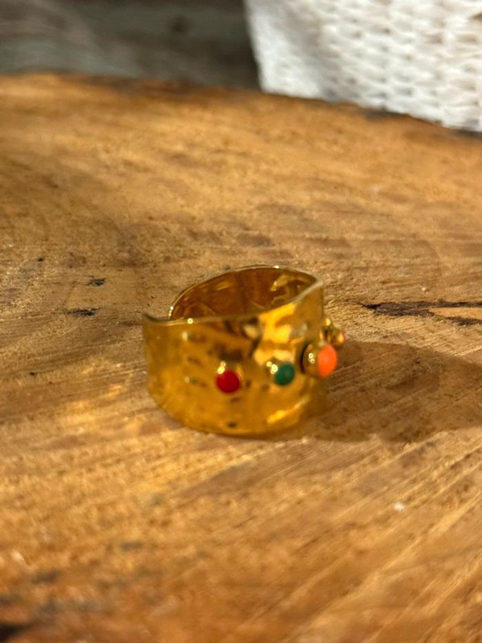 Bague large réglable acier inoxydable or perles couleurs - photo numéro 1