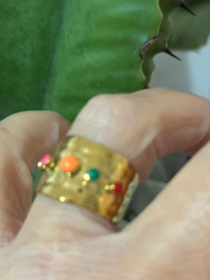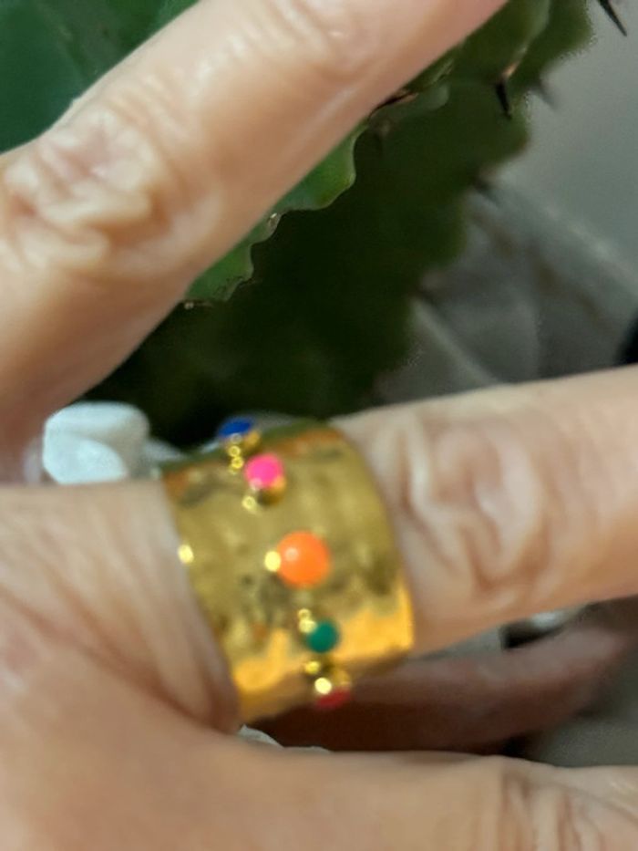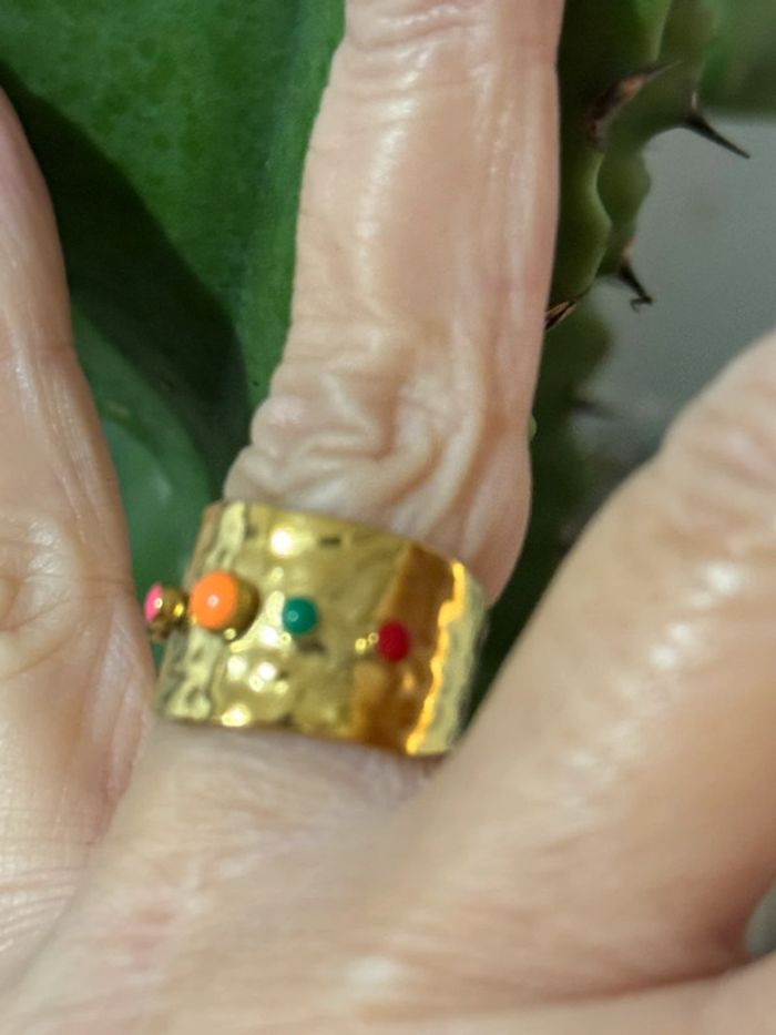 Bague large réglable acier inoxydable or perles couleurs - photo numéro 8