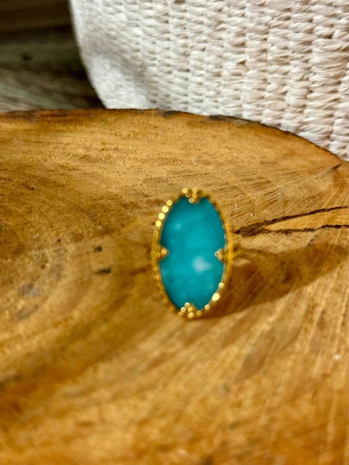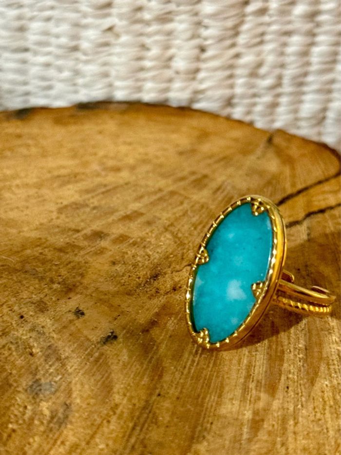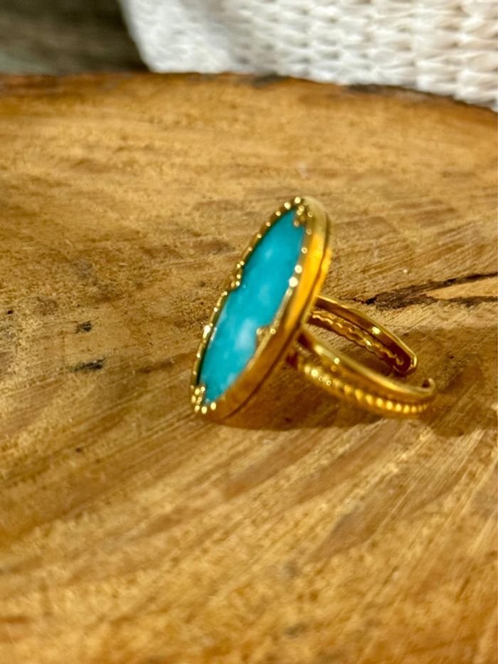Bague réglable acier inoxydable or pierre naturelle turquoise mile Mila neuve