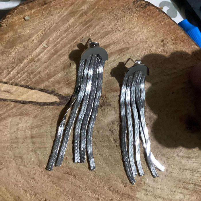 Boucles d’oreilles longues chaînes épaisse les 10 cm acier inoxydable argent - photo numéro 1