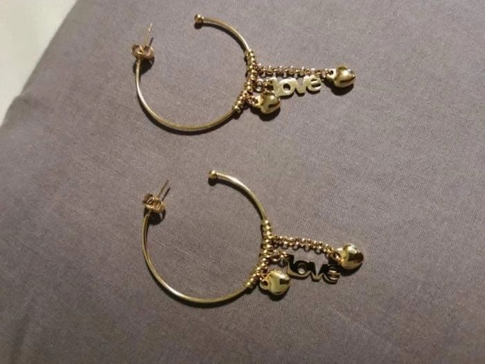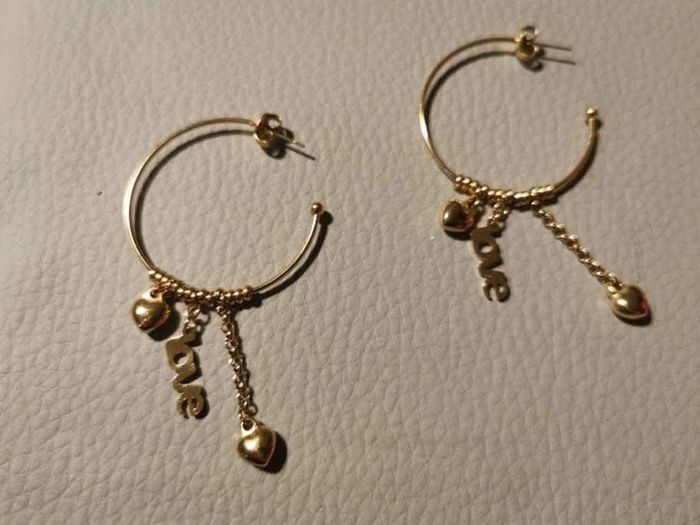Créoles chaîne love cœurs moyennes acier inoxydable or de qualité neuve dans pochon