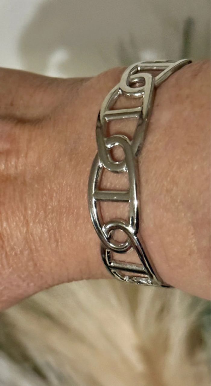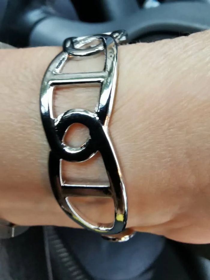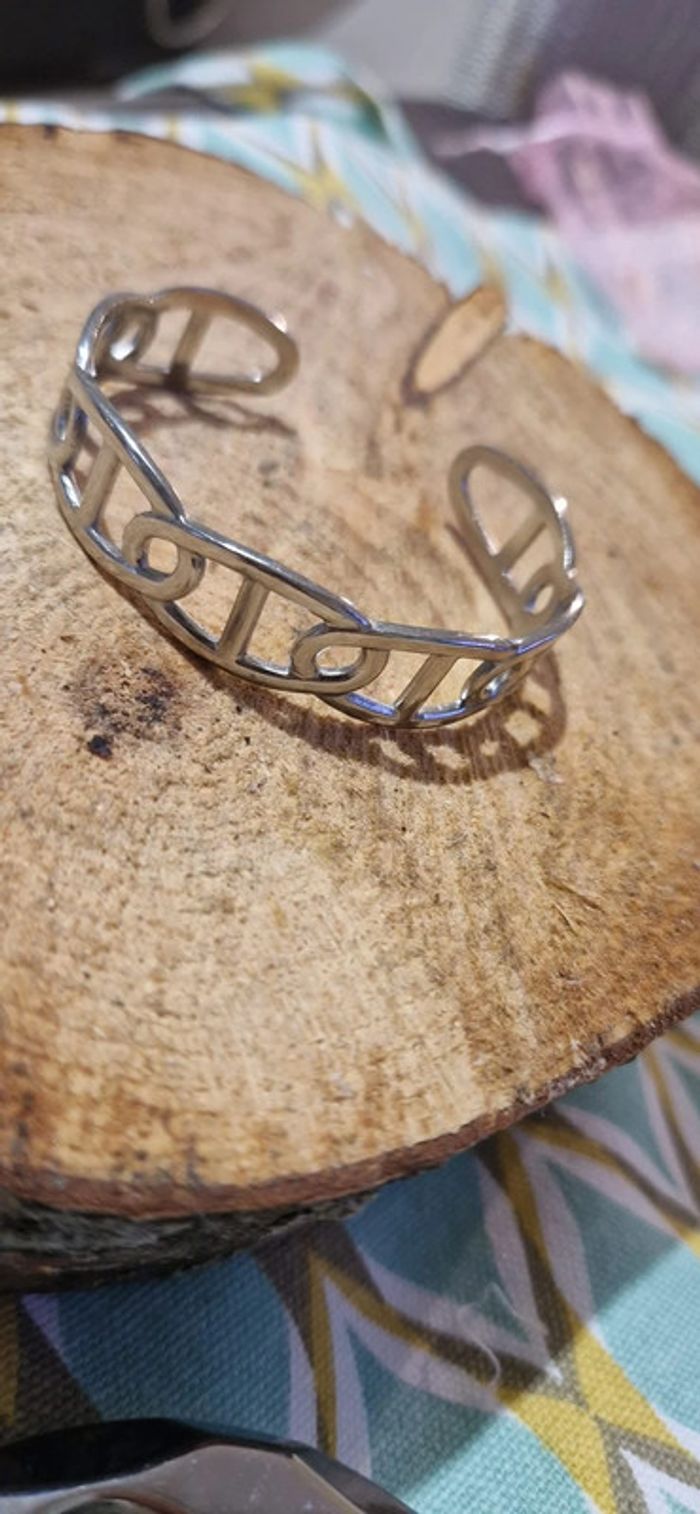 Jonc réglable acier inoxydable argent maillons farandole - photo numéro 10