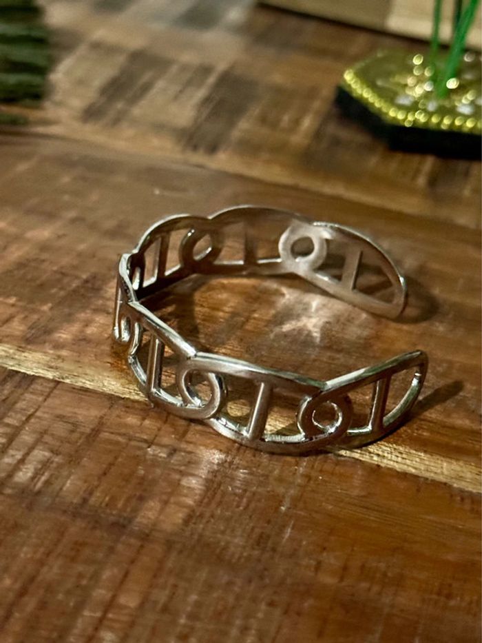 Jonc réglable acier inoxydable argent maillons farandole - photo numéro 1