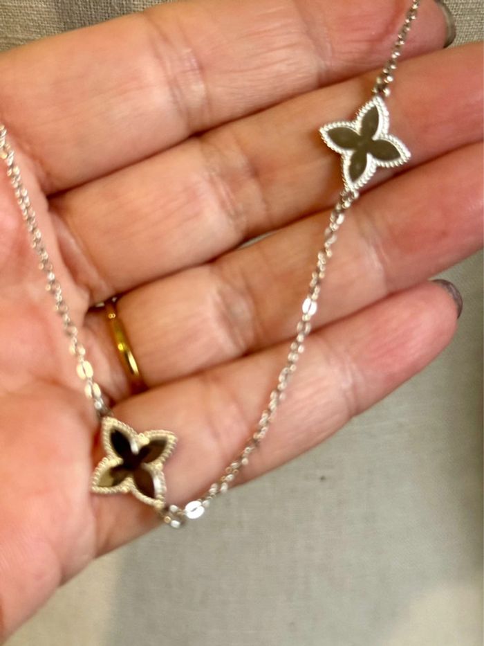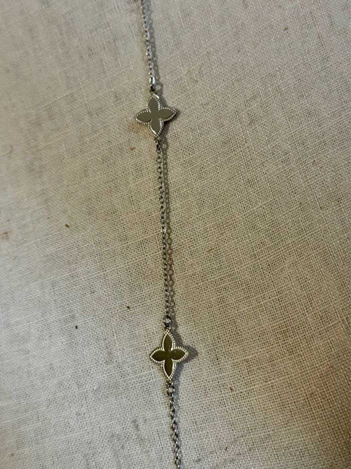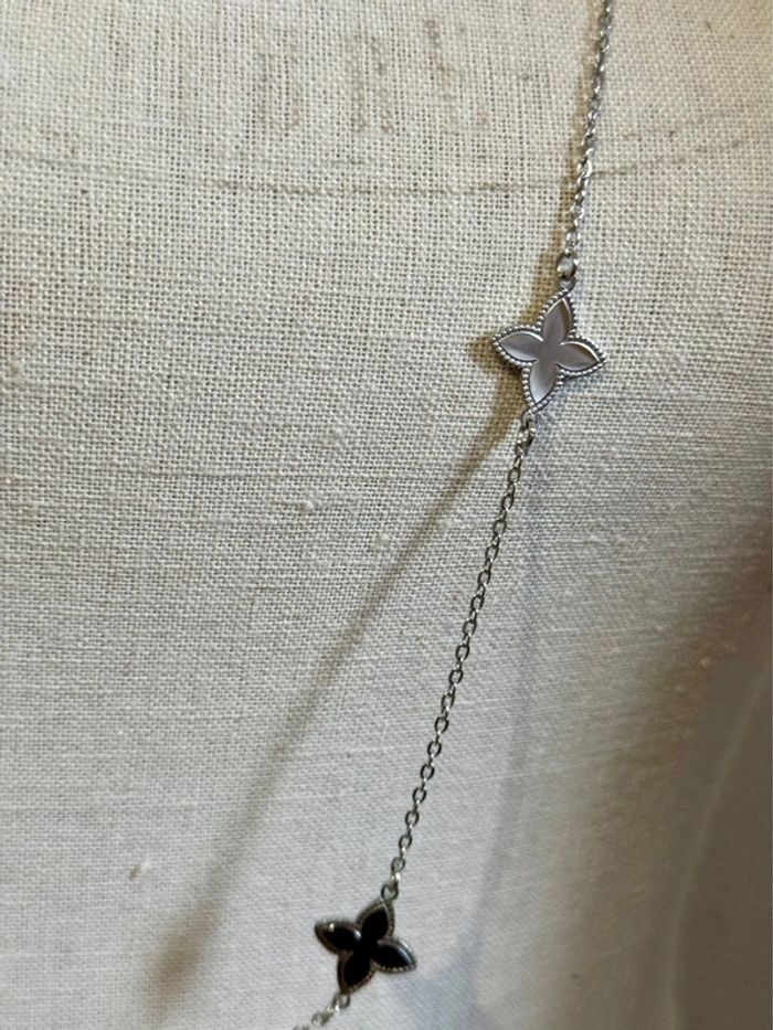 Collier sautoir réglable trèfles  acier inoxydable argent - photo numéro 4
