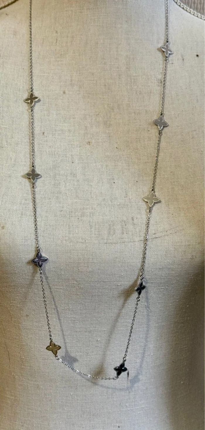 Collier sautoir réglable trèfles  acier inoxydable argent