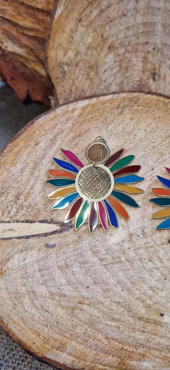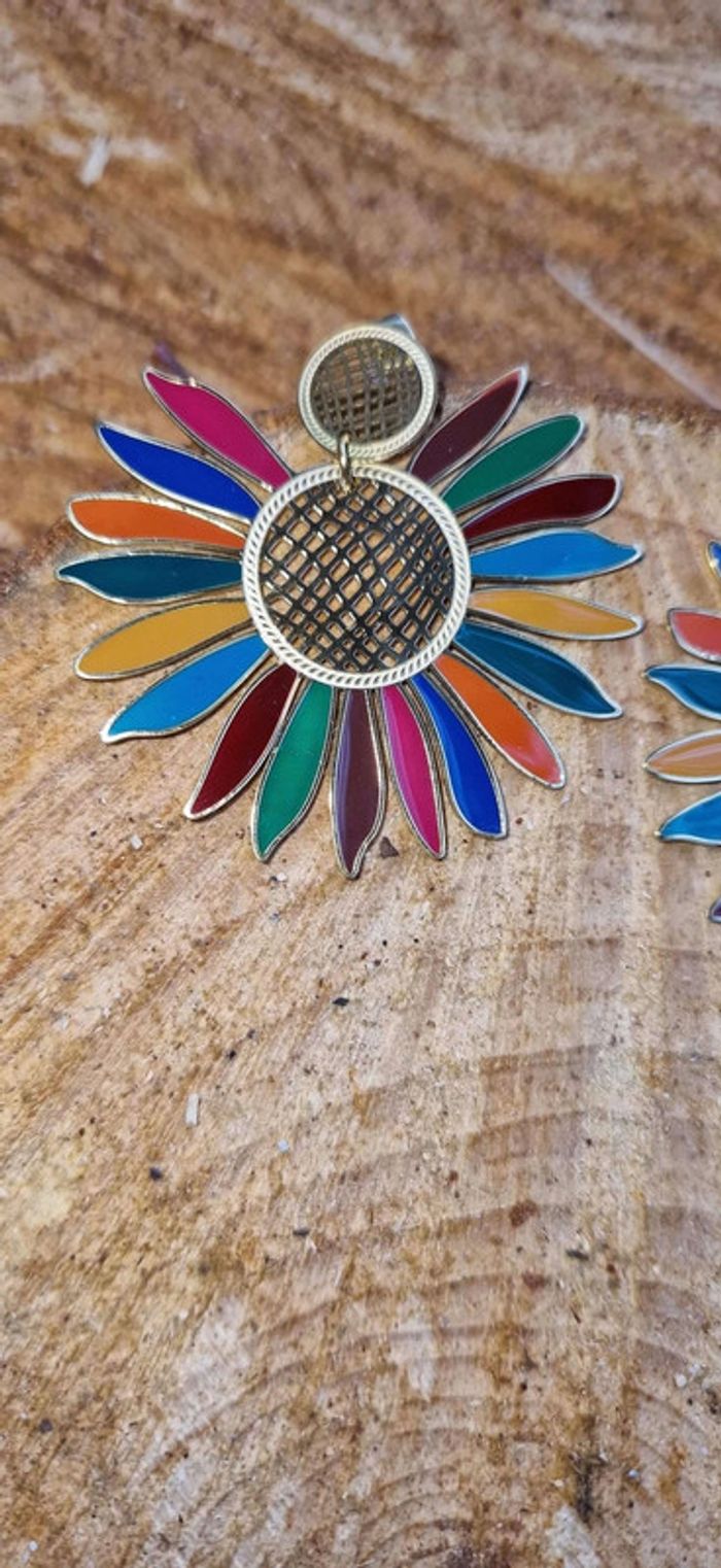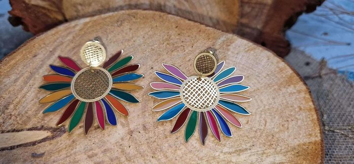 Boucles d’oreilles 10 cm environ mile Mila acier inoxydable or et résine couleur soleil