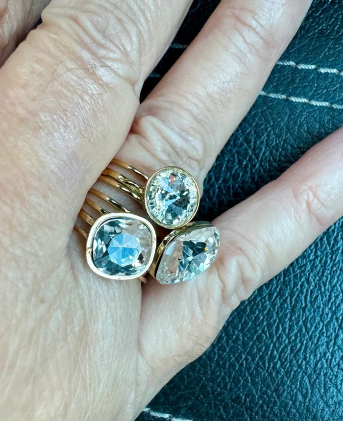 Bague réglable acier inoxydable argent 2 pavés ronds cristaux - photo numéro 7
