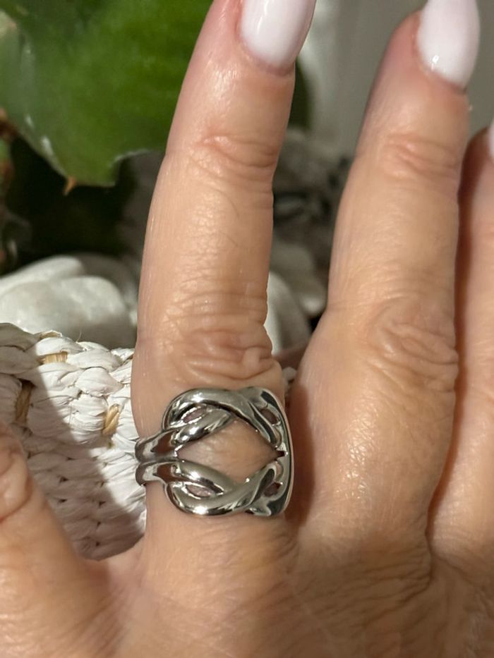 Bague réglable acier inoxydable argent double noeud - photo numéro 1