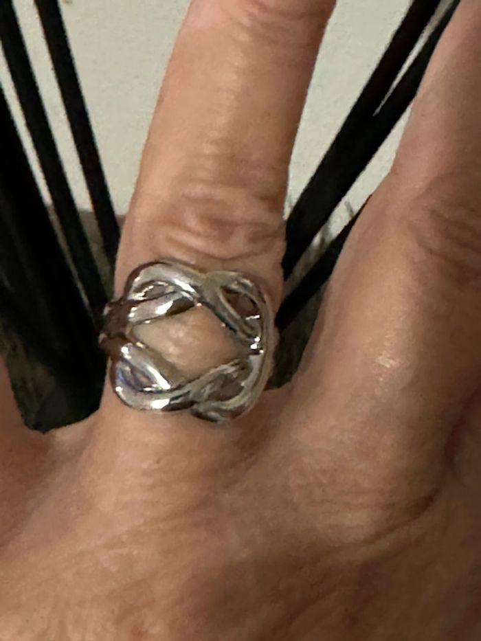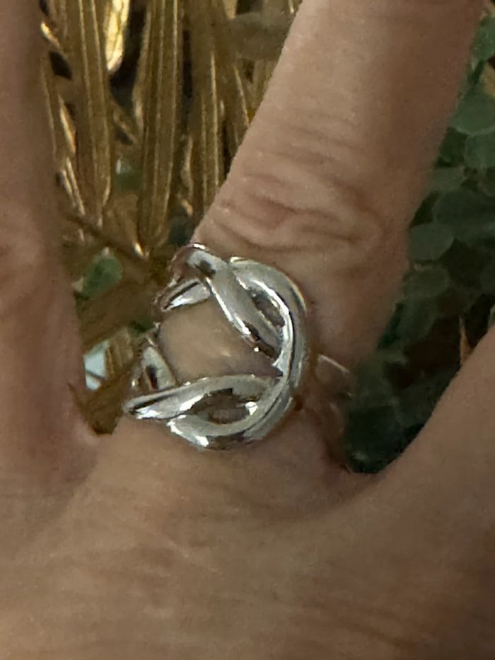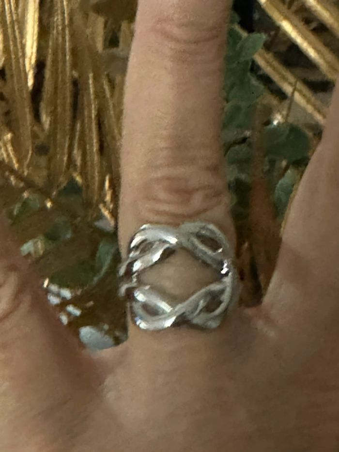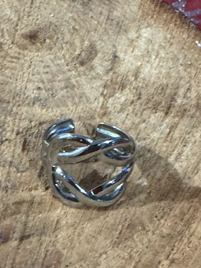 Bague neuve réglable doublé noeud acier inoxydable argent de qualité neuve dans pochon