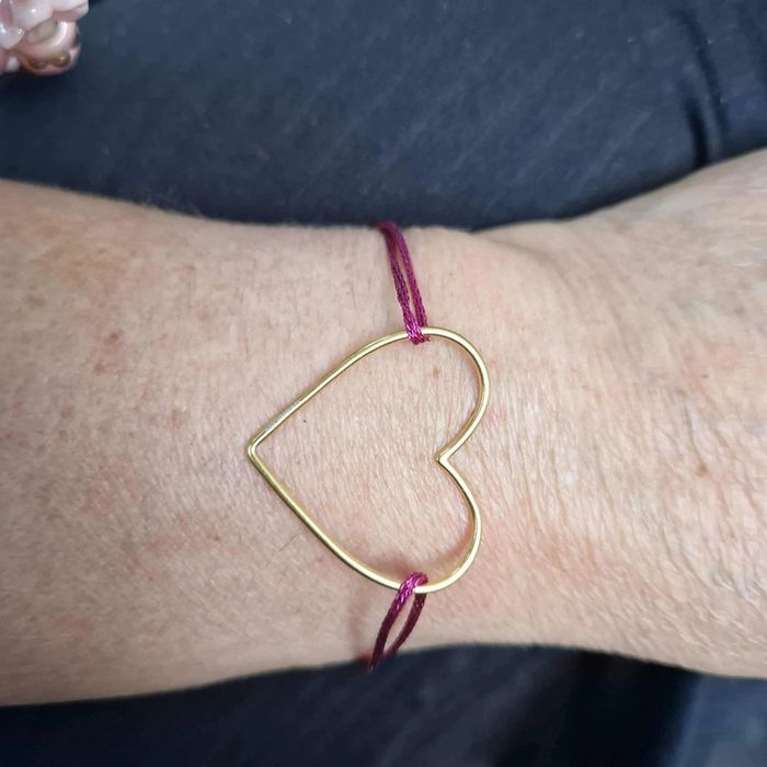 Bracelet cordon rose fushia pailleté cœur fin xl acier inoxydable or - photo numéro 4