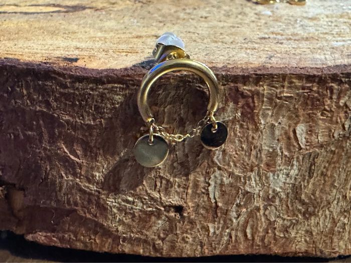 Paire de boucles d’oreilles demi créoles chaîné traversante petites papilles médailles marque mile Mila neuve