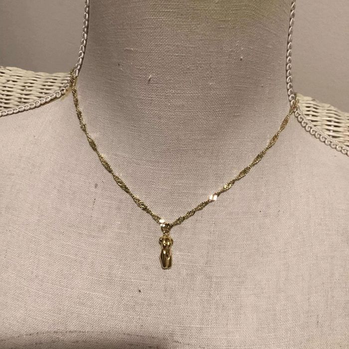 Collier 2 chaînes réglable acier inoxydable or pendentif corps de femme buste - photo numéro 1