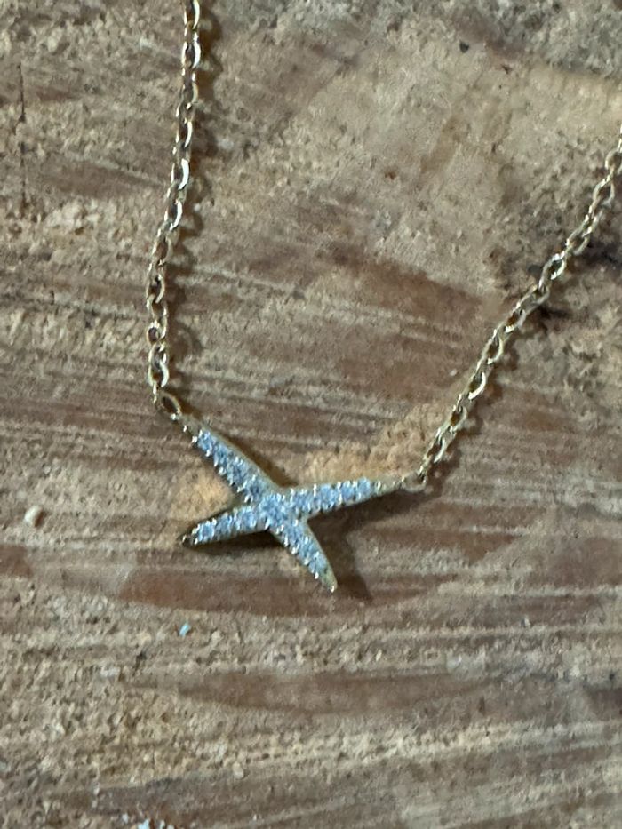 Collier réglable acier inoxydable or de qualité liens croisés zircons neuf dans pochon