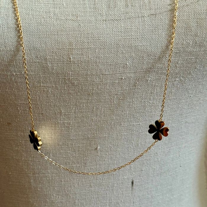 Sautoir réglable acier inoxydable or trèfles cristaux - photo numéro 2