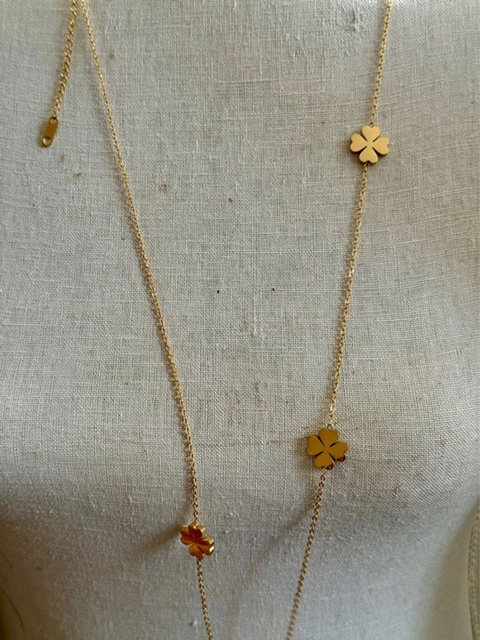 Sautoir réglable acier inoxydable or trèfles cristaux - photo numéro 1