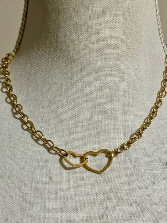 ☑️attention Merci de ne pas passer par Vinted go ☑️ Collier mailles épaisses acier inoxydable or réglable 2 cœurs entrelacés