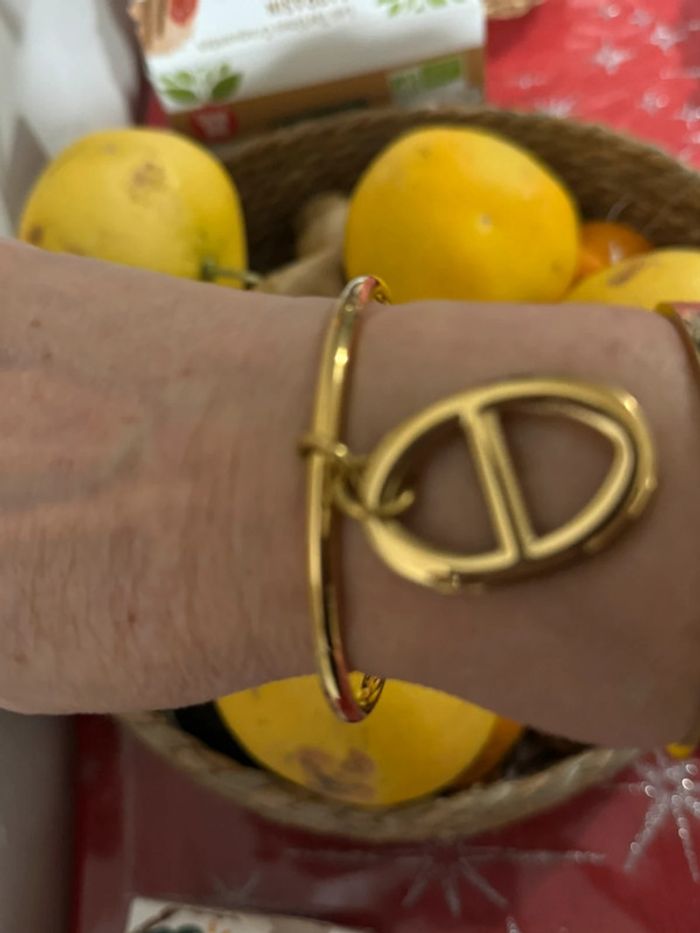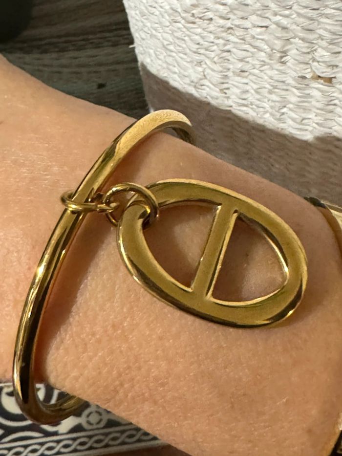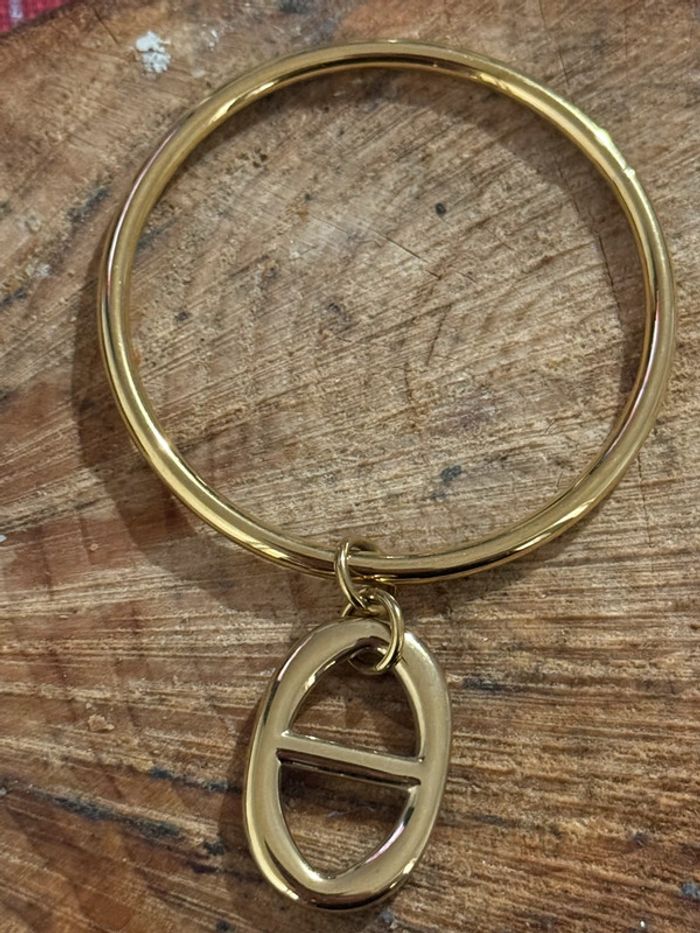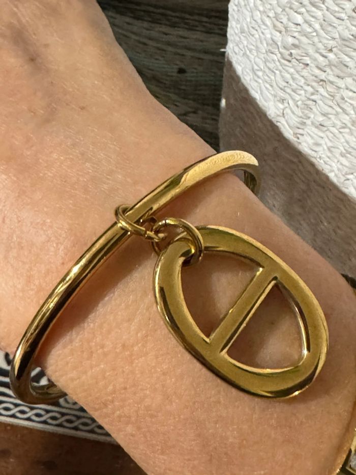 Bracelet jonc 6,5 cm de diamètre breloque gris maillon farandole